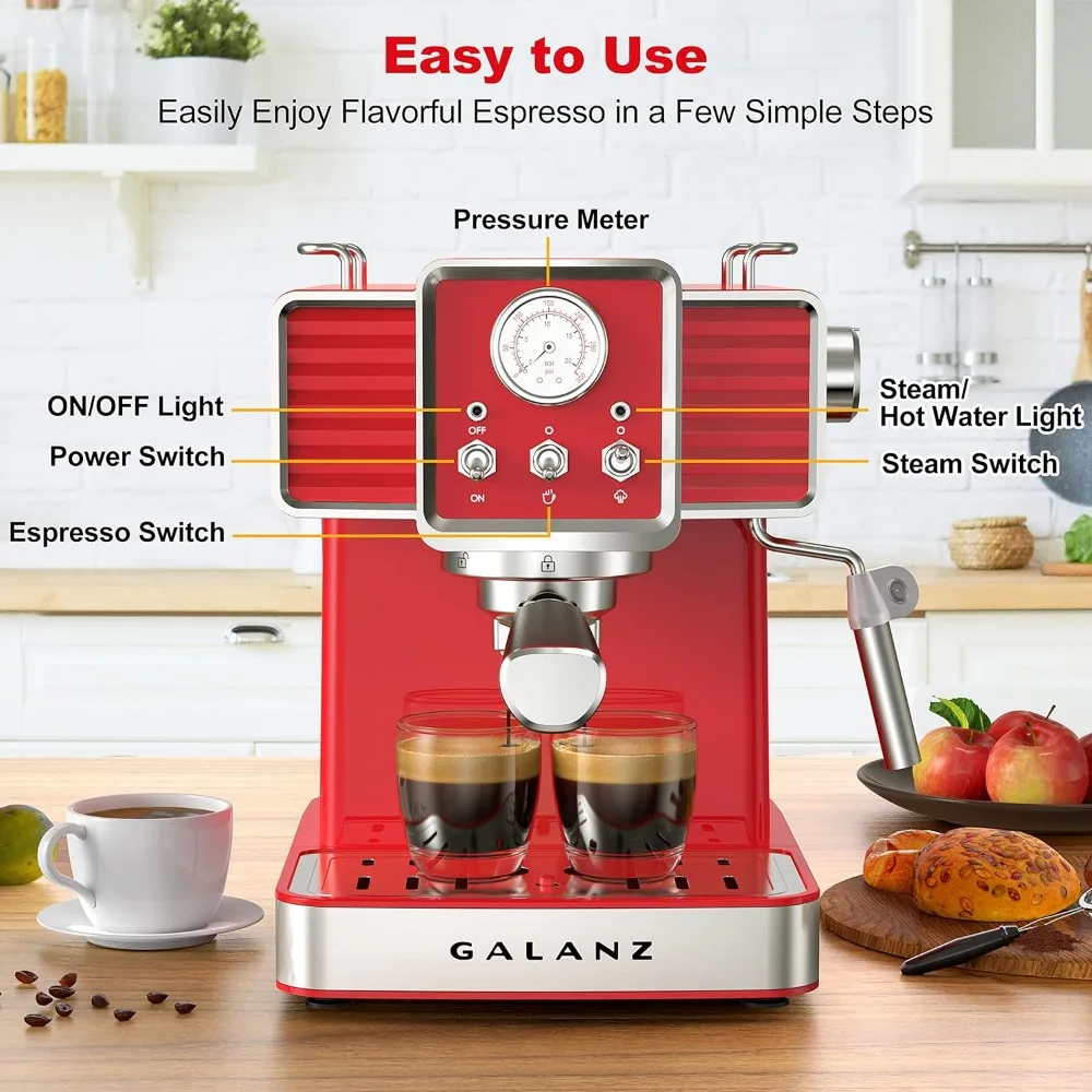 - EASY TO CLEAN – Galanz espresso maker includes a large, transparent 1.5L water tank & drip tray – Both are removable making them easy to clean at a moments notice!