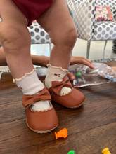 Although my baby is 13 months old, but the size is 6-12 months old, and then it is very large, the stock is about 5-8mm. Wide, but well fixed with clasp. The insole is soft, not removed-glued.