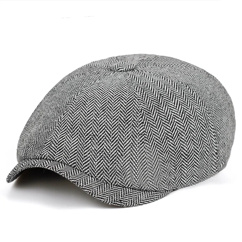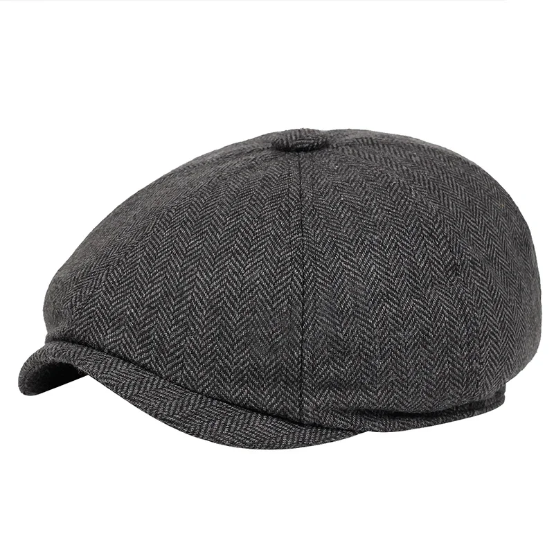 Retro Tweed Hat Men Beret Gatsby Beret Hats Street Caps Peaked Octagonal with Brim Caps Winter Spring Hip Hop Beret