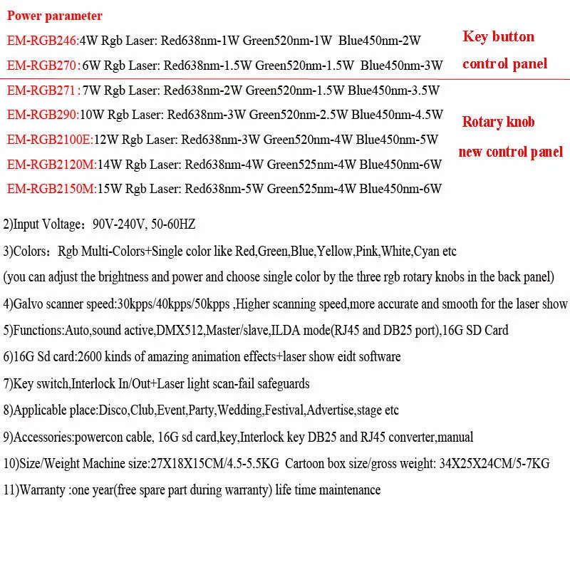 For 7W 10W 12W 14W 15WRGB Laser With Rotary Button Display Screen