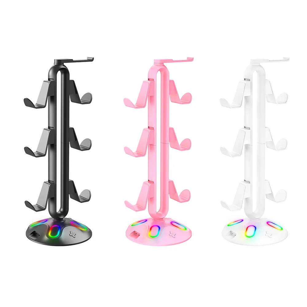 RGB Controller Stand Hanger 9 Light Modes Game Controller Headset Bracket with Hub 2 USB Ports with 3.5mm & Type-C for Home Desk Specification: