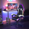 RGB Gaming Chair LED Lights Ergonomic Computer Chair Reclining PU Leather High Back Video Game Chair Adjustable Lumbar Support