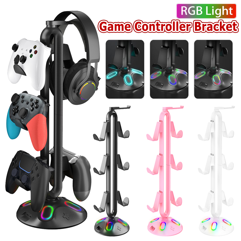 RGB Controller Stand Hanger 9 Light Modes Game Controller Headset Bracket with Hub 2 USB Ports with 3.5mm & Type-C for Home Desk Specification: