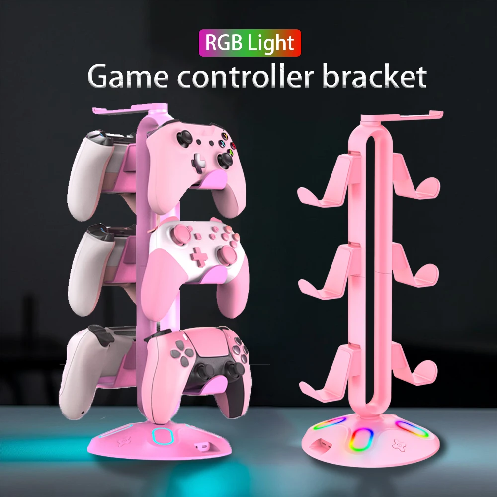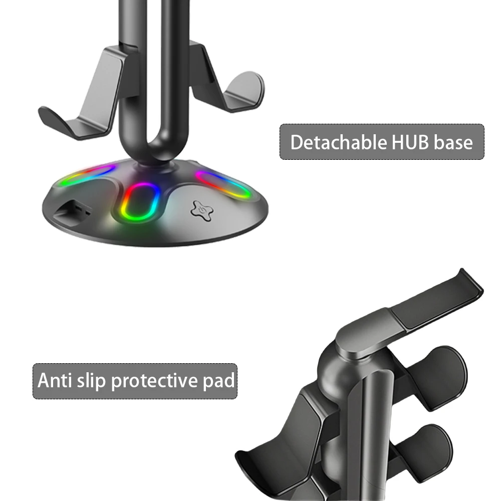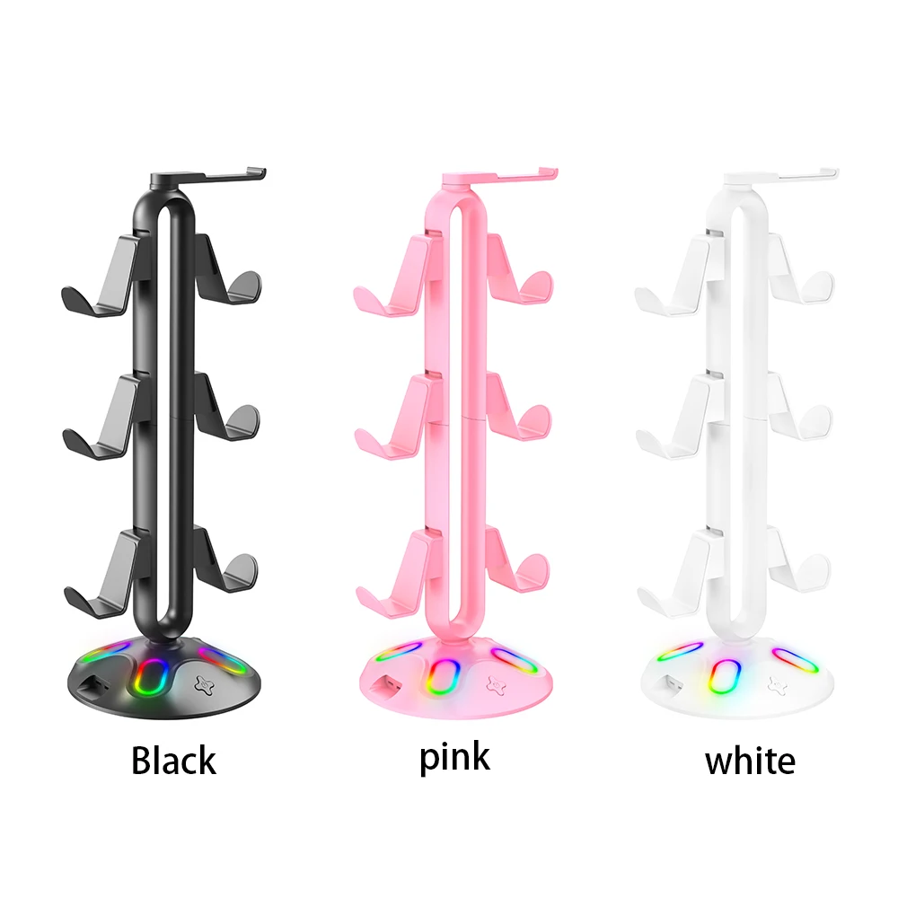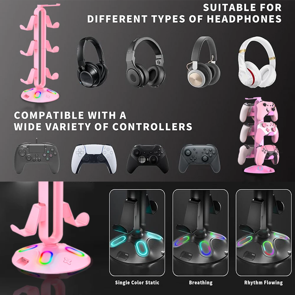 RGB Controller Stand Hanger 9 Light Modes Game Controller Headset Bracket with Hub 2 USB Ports with 3.5mm & Type-C for Home Desk Specification: