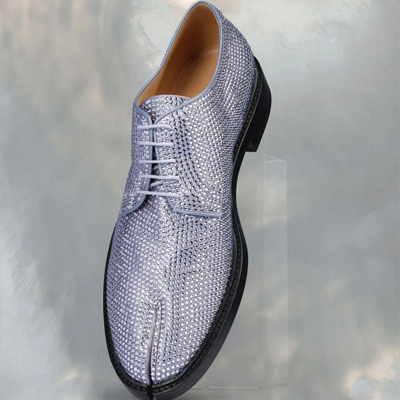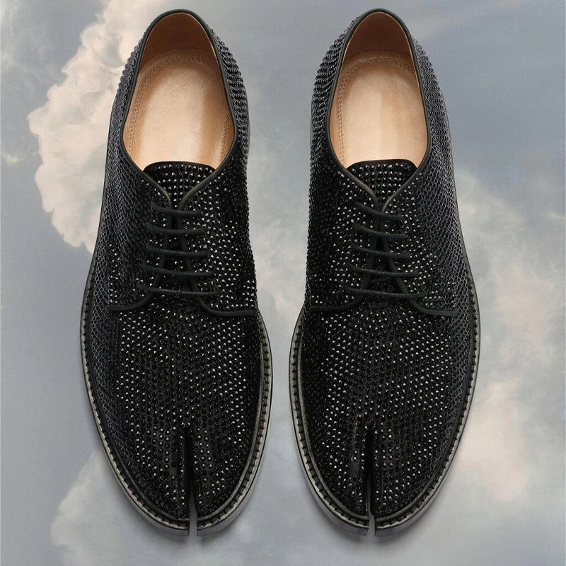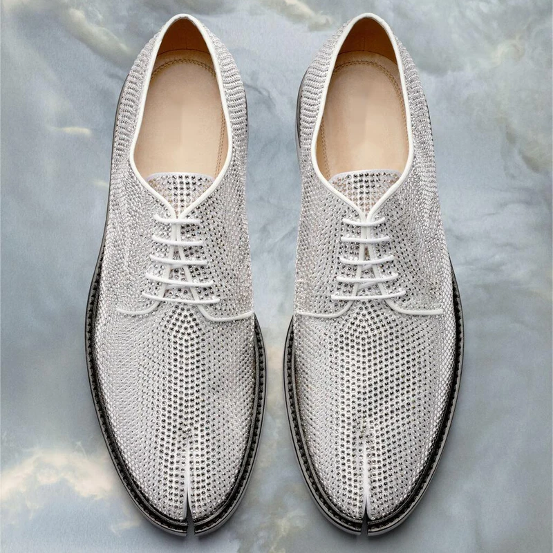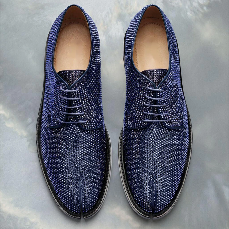 Rhinestone Multicolor Split Toe Shoes Lace-Up British Style Genuine Leather Shoe Men Design Loafers Wedding Business Dress Shoes