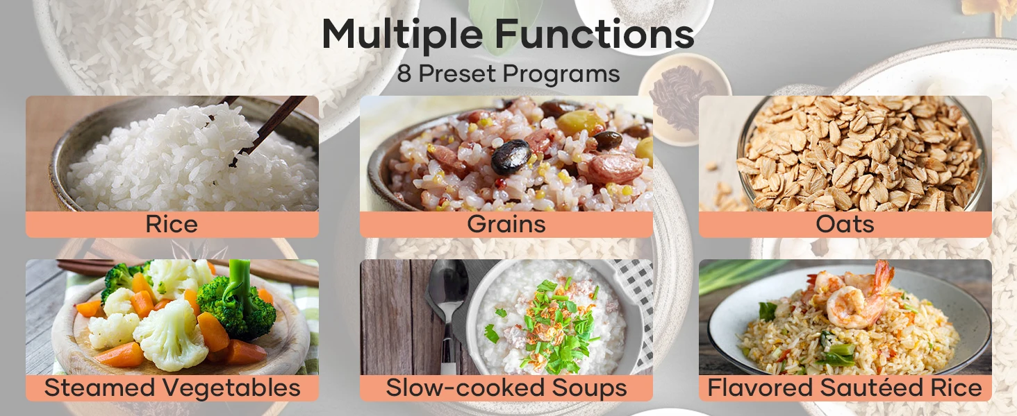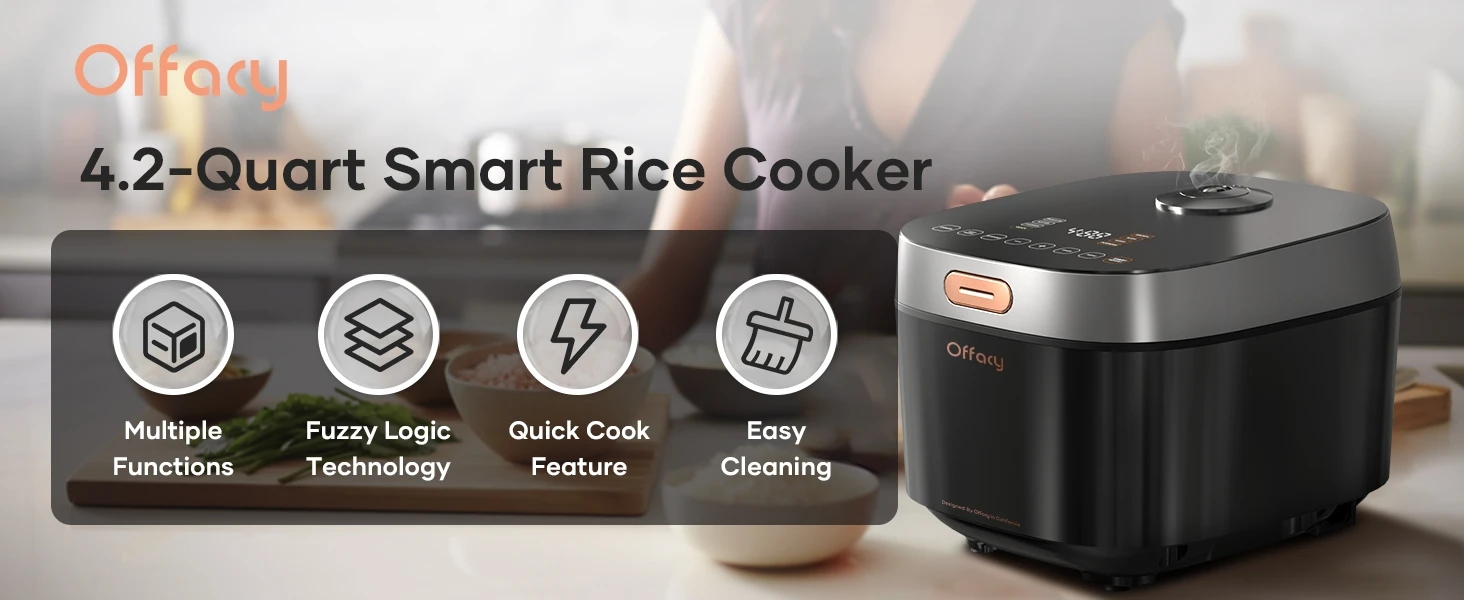Elevate your cooking game with Offacy smart rice cooker. Beyond perfect rice, it offers 8 Preset Programs, Quick Cook, and easy to clean. With fuzzy logic tech and a compact design, enjoy effortless and delicious meals anytime.