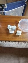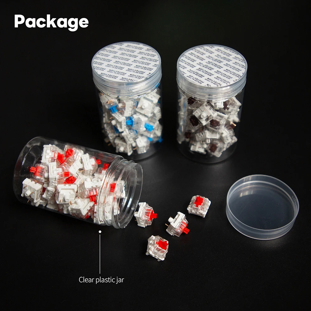 They arrived in 3 little bottles. The switches are silent and squishy... I find it difficult to differentiate with the Reds.