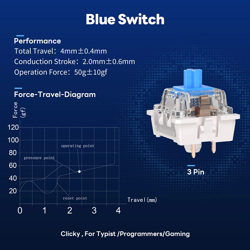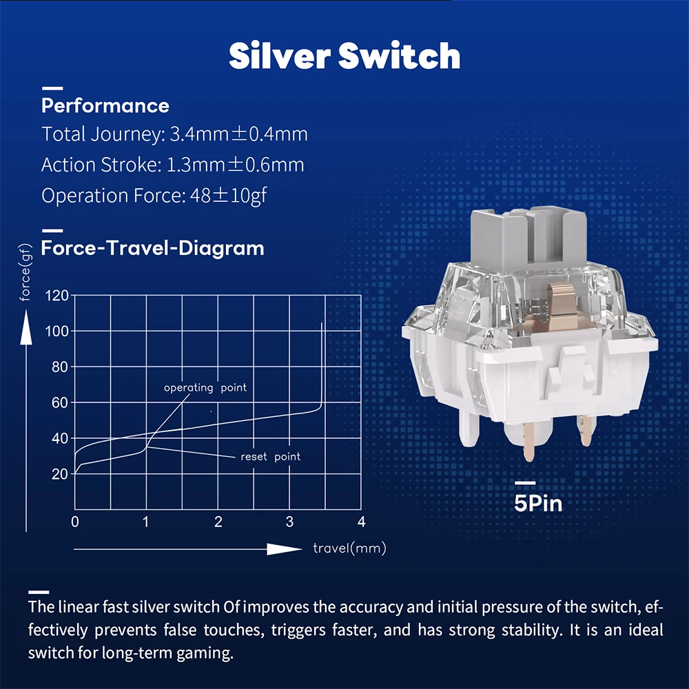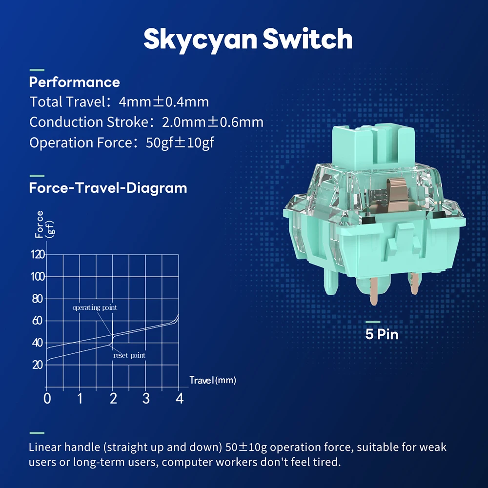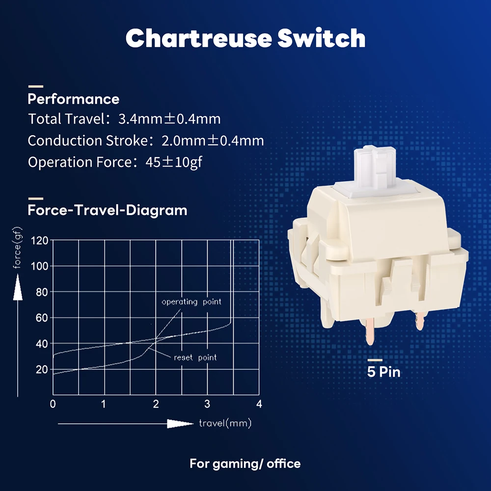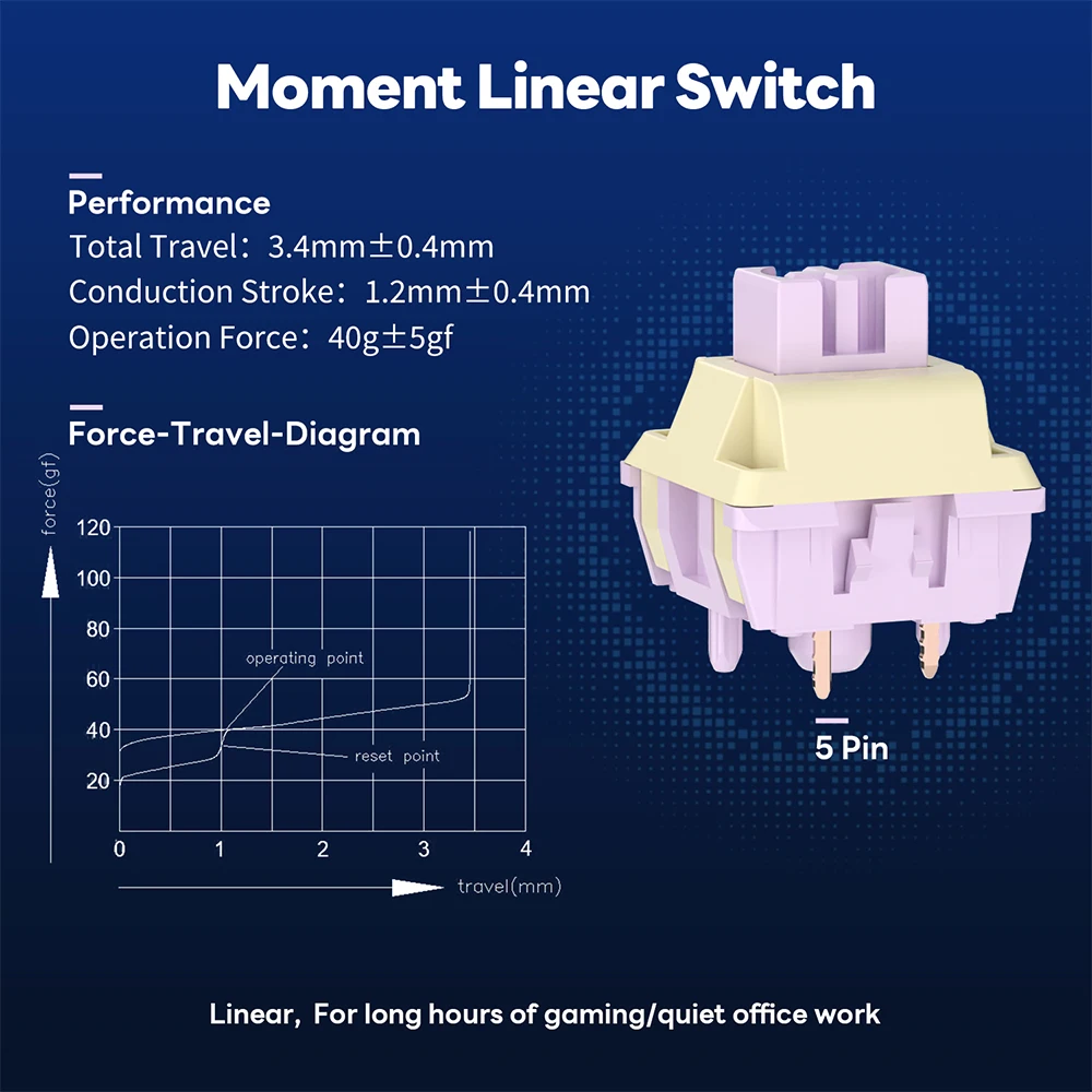 Excellent linear switches, fast and with a pleasant sound type "clack" serious, the keycaps wobble somewhat from the long stem but it is only noticeable if you hold the keys down for a long time, totally recommended