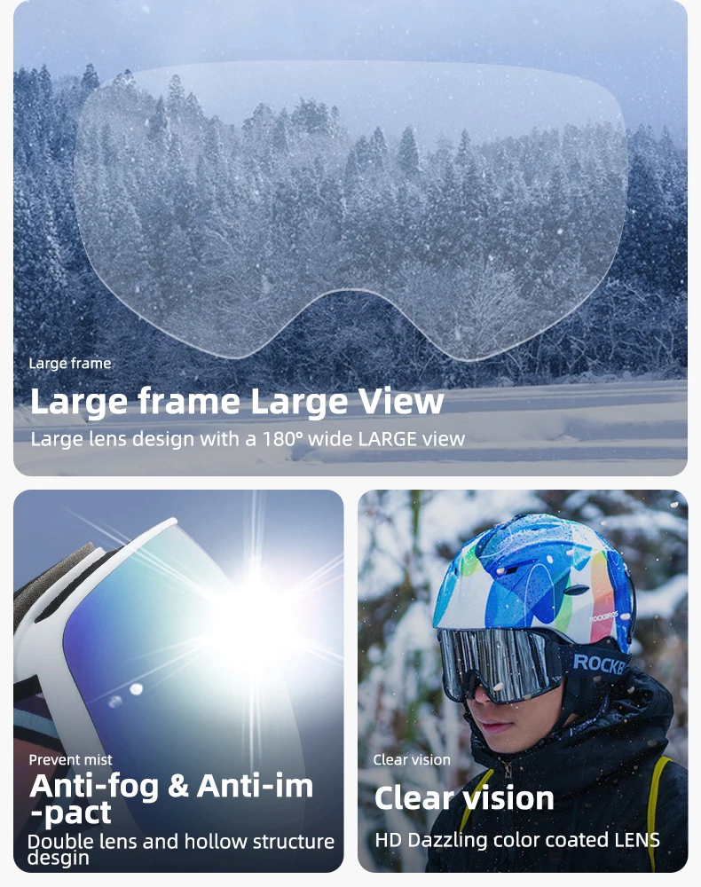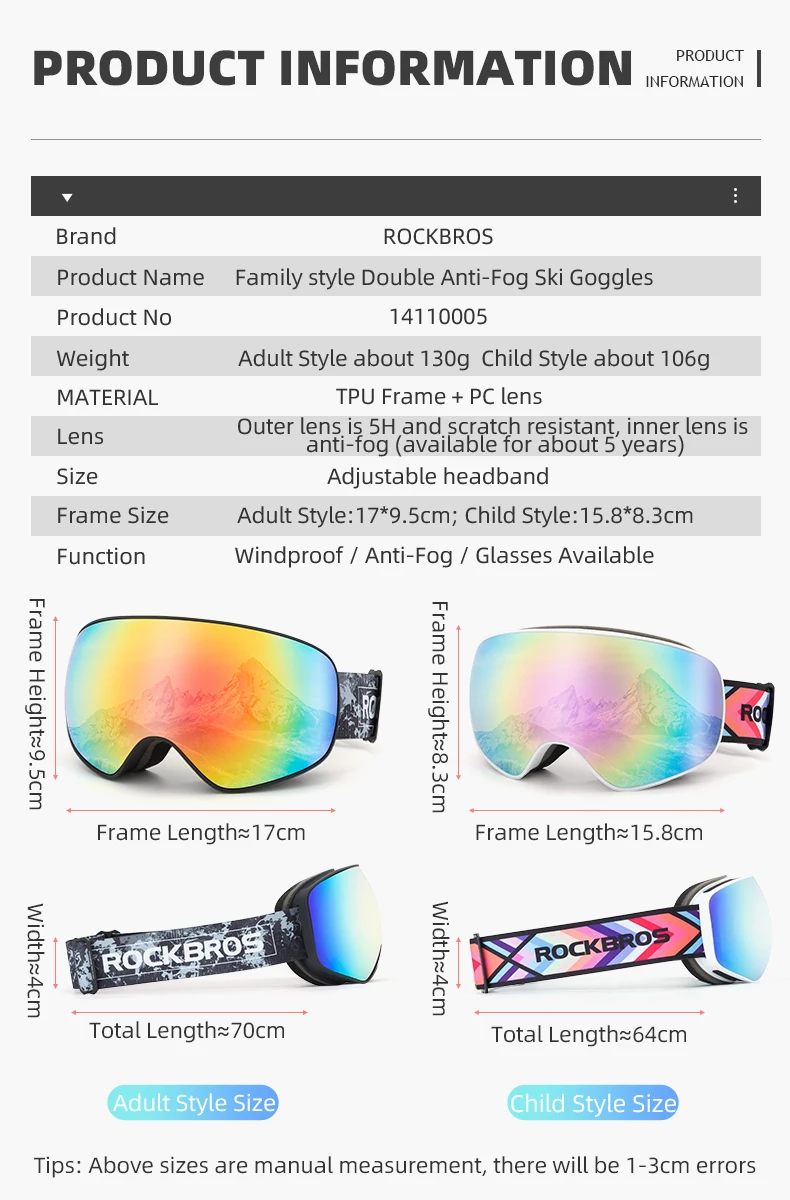 ROCKBROS Skiing Snowboarding Eyewear Goggles for Adult / Child Windproof Anti-fog Snow Ski Glasses Winter Sports Accessories