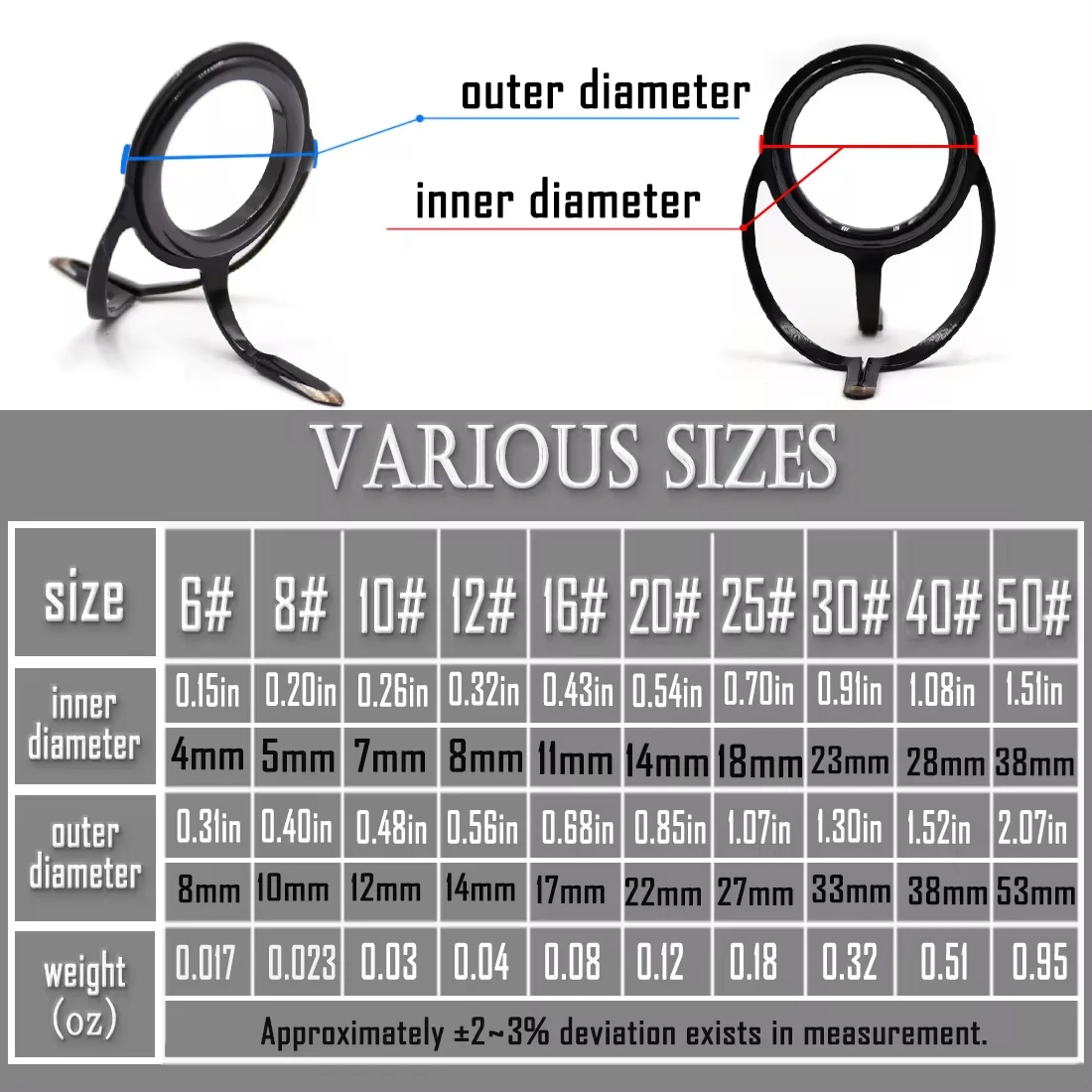 Trusted Quality Rod Guides Tip Repair Kit: The fishing rod guides and tip tops both have smooth ceramic ring that reduces damage to the line and makes your fishing line less prone to breakage. The design with curved double-legs makes the rod guides more stable than ordinary rod guides.