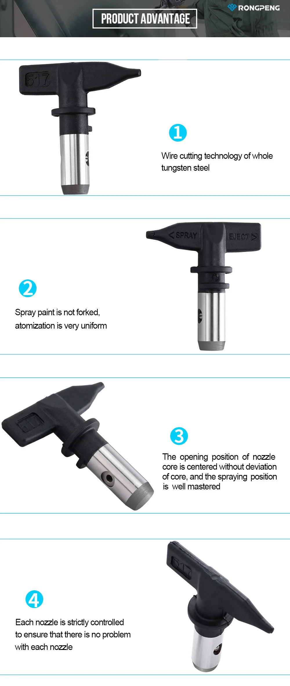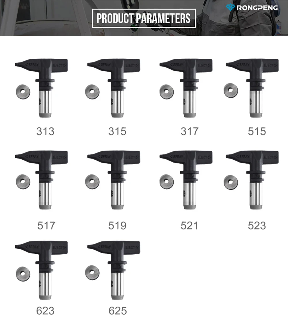 RONGPENG Reversible Airless Spray Gun Tip Nozzle 313,315,317,515,517,519,521,523,623,625 Switch Tip Spray Gun Accessories