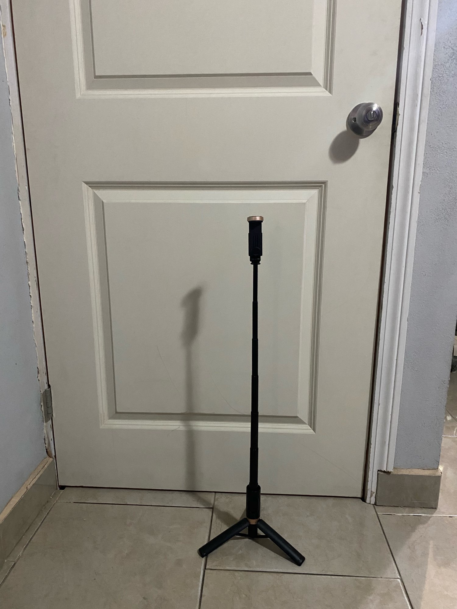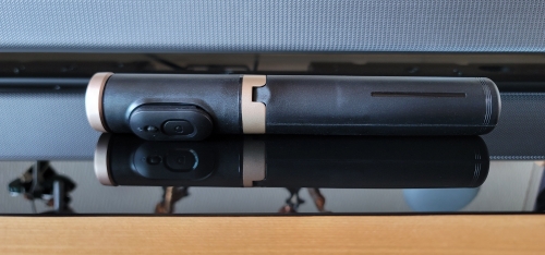 The product is good quality, the handle is plastic and the metal extendable, the bluetooth control works very well. The item arrived in time and form, I recommend it