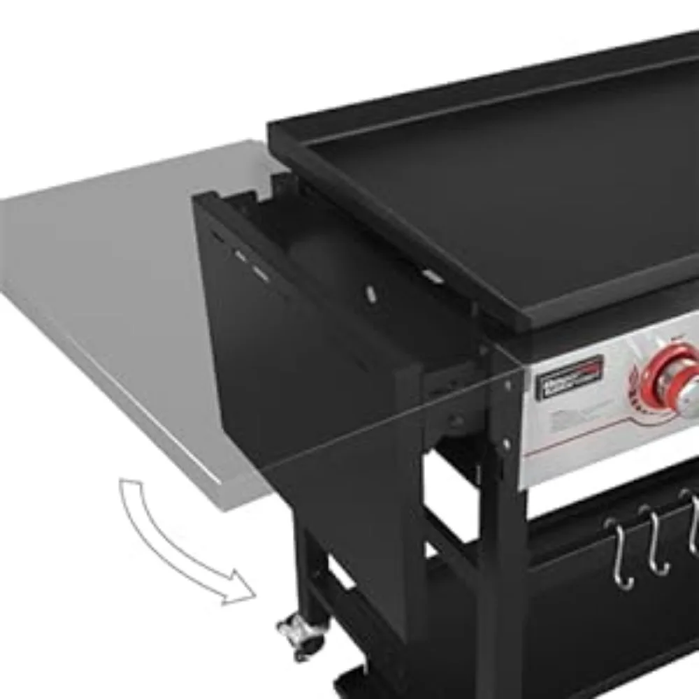 Foldable Side ShelvesPut various seasonings or platters on the large metal side shelves to keep them within arm’s reach. Collapsible design enables its compact storage after use. |