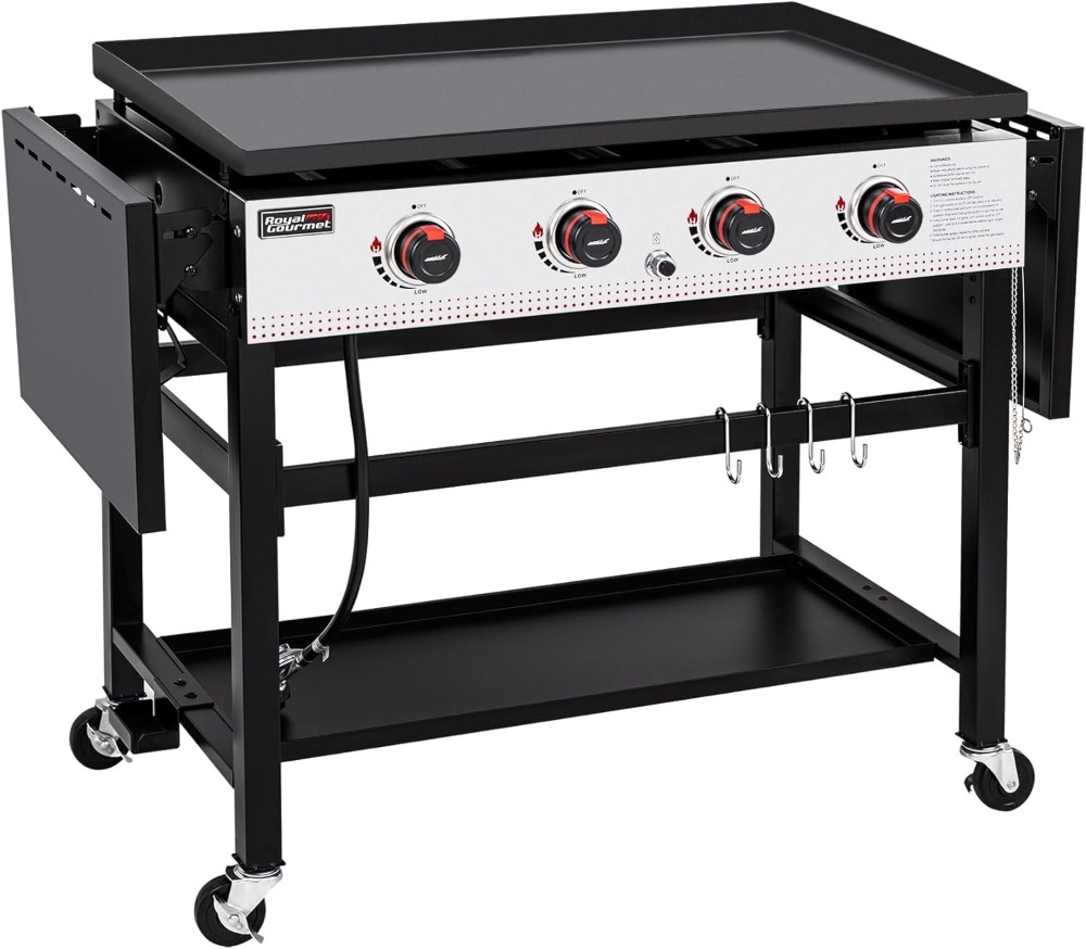 Royal Gourmet GB4002 4-Burner Flat Top Gas Grill with Folding Side Tables, 36-Inch Propane Griddle Station for Outdoor BBQ