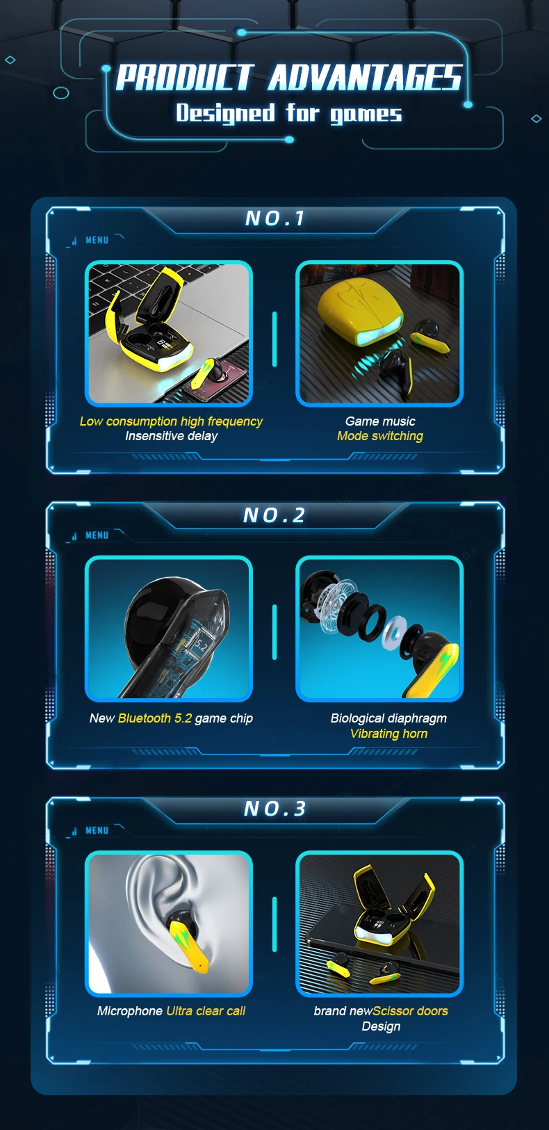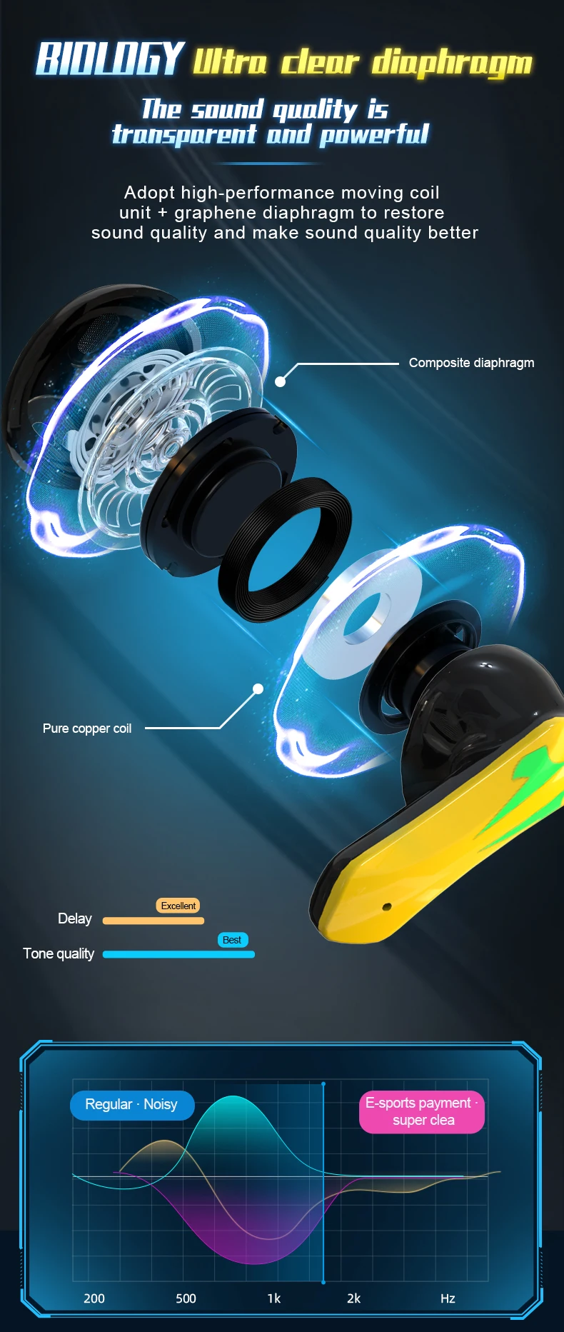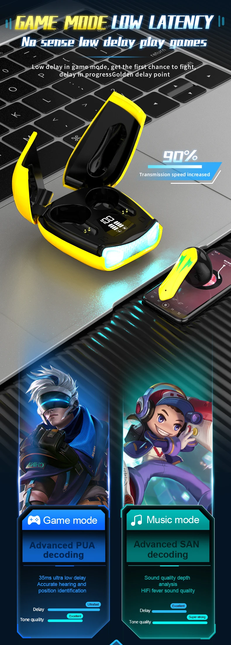 Flagship Edition+ Low-power Advanced 5.3 Chip+ Three modes are freely switched+ HiFi sound quality +0 game delay+ Memory Automatic pairing+ Binaural HD Call + Intelligent Noise Reduction