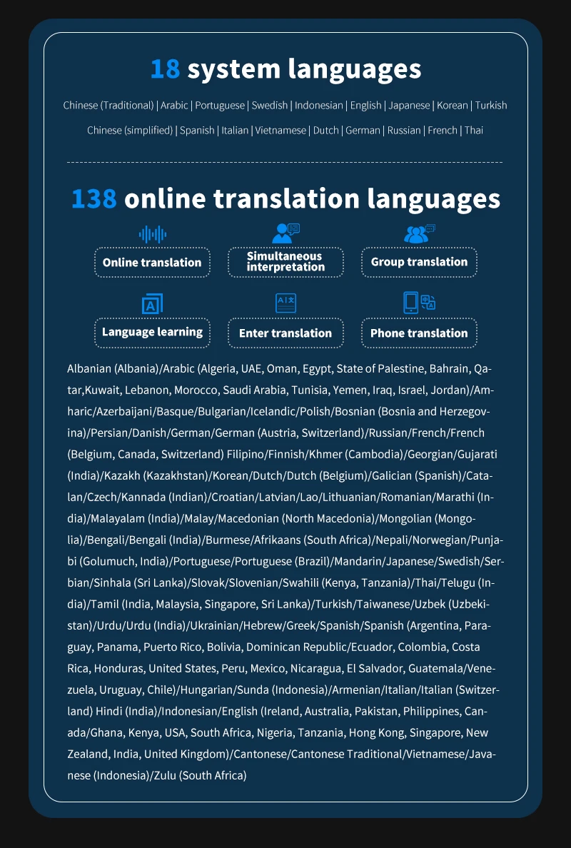 ▶ Multilingual Communication: S85 Pro Language Translation Device is designed to facilitate seamless communication between individuals speaking different languages. With support for 16 system languages and the ability to translate 138 languages online and 19 offline, this device ensures effective communication in various scenarios.