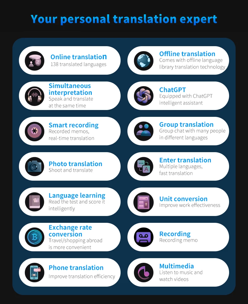 ▶ Enhanced Functionality: Capture important moments with the built-in 5MP camera that supports rear shooting and automatic focusing. The high-definition 4.0-inch capacitive touchscreen ensures clear display of translated content. Additionally, it supports video/audio recording, clock function display, music playback, and instant conversion of up to 25 currency exchange rates, catering to diverse needs.