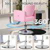 This professional salon barber chair is designed for heavy-duty use, featuring a robust hydraulic pump system that supports up to 350 pounds. It offers smooth and secure height adjustment, making it perfect for high-traffic beauty salons, barbershops, tattoo studios, and spa centers. The chair is built for all-day use and provides the strength and reliability needed for professionals. The 360-degree swivel styling chair allows for maximum flexibility, making it easy to position during various services such as haircuts, blowouts, and color treatments. The full swivel motion ensures a seamless experience for hairstylists, barbers, and makeup artists, reducing fatigue and improving efficiency during long work hours. Upholstered with high-quality PU leather, this hair salon chair is water-resistant, stain-resistant, and easy to clean, making it ideal for maintaining hygiene in busy workspaces. The elegant texture maintains a professional appearance while withstanding everyday wear and tear. The chair features a 5-inch thick seat cushion filled with high-density memory foam, providing ultimate comfort and resisting sagging. The salon chair’s height can be adjusted by 5 inches using the durable foot-operated hydraulic lift, allowing for stylist convenience whether working on hair styling, shampooing, or beard grooming. This adjustable barber chair adapts to your workflow and client comfort with ease, making it ideal for hair professionals of all levels. This hydraulic salon chair is multi-functional and can be used in a variety of professional settings, including salons, spas, and tattoo studios. It is suitable for cosmetologists, estheticians, hairstylists, and tattoo artists alike. Assembly is easy with all hardware and clear instructions included for fast setup. Reliable customer support is provided—if you have any issues with your barber salon chair, simply contact us for prompt assistance. We guarantee 100% satisfaction and a return policy for this salon styling chair.