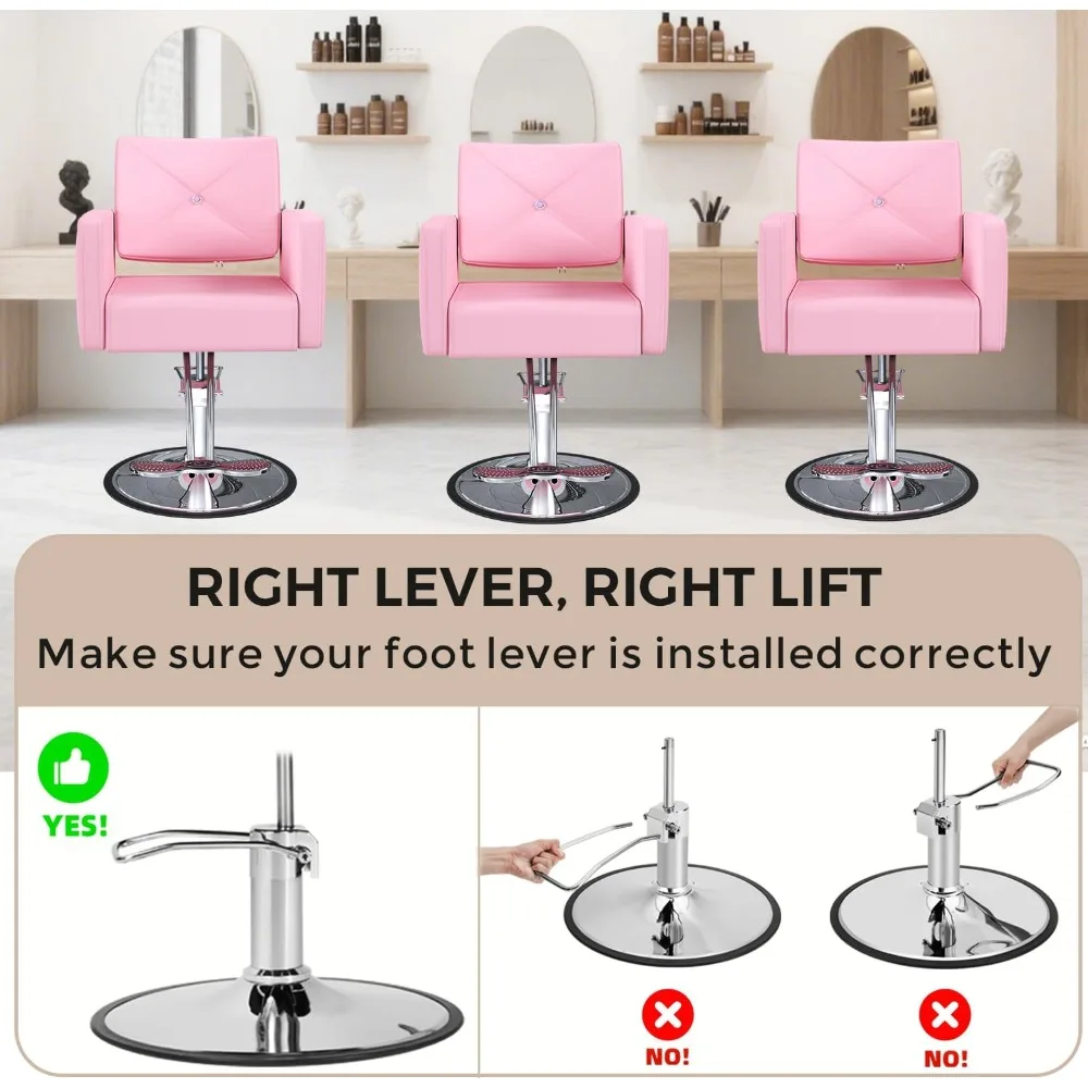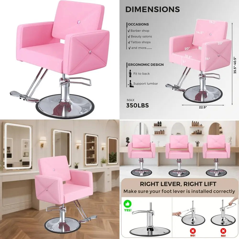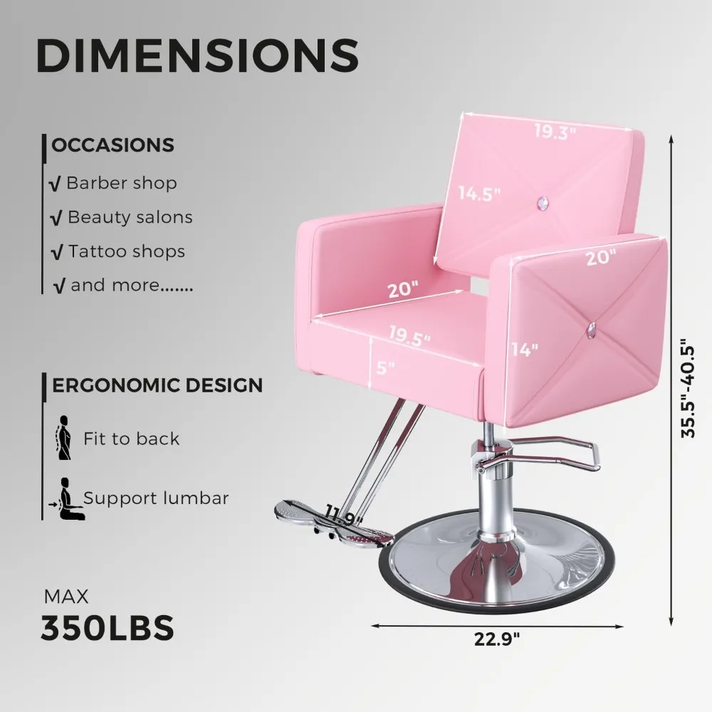 This professional salon barber chair is designed for heavy-duty use, featuring a robust hydraulic pump system that supports up to 350 pounds. It offers smooth and secure height adjustment, making it perfect for high-traffic beauty salons, barbershops, tattoo studios, and spa centers. The chair is built for all-day use and provides the strength and reliability needed for professionals. The 360-degree swivel styling chair allows for maximum flexibility, making it easy to position during various services such as haircuts, blowouts, and color treatments. The full swivel motion ensures a seamless experience for hairstylists, barbers, and makeup artists, reducing fatigue and improving efficiency during long work hours. Upholstered with high-quality PU leather, this hair salon chair is water-resistant, stain-resistant, and easy to clean, making it ideal for maintaining hygiene in busy workspaces. The elegant texture maintains a professional appearance while withstanding everyday wear and tear. The chair features a 5-inch thick seat cushion filled with high-density memory foam, providing ultimate comfort and resisting sagging. The salon chair’s height can be adjusted by 5 inches using the durable foot-operated hydraulic lift, allowing for stylist convenience whether working on hair styling, shampooing, or beard grooming. This adjustable barber chair adapts to your workflow and client comfort with ease, making it ideal for hair professionals of all levels. This hydraulic salon chair is multi-functional and can be used in a variety of professional settings, including salons, spas, and tattoo studios. It is suitable for cosmetologists, estheticians, hairstylists, and tattoo artists alike. Assembly is easy with all hardware and clear instructions included for fast setup. Reliable customer support is provided—if you have any issues with your barber salon chair, simply contact us for prompt assistance. We guarantee 100% satisfaction and a return policy for this salon styling chair.