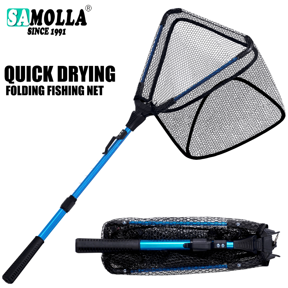 SAMOLLA Fishing Net Rubber Coated Landing Net Pole Easy Catch&Release Foldable Telescopic Sea Fishing Goods Accessorie