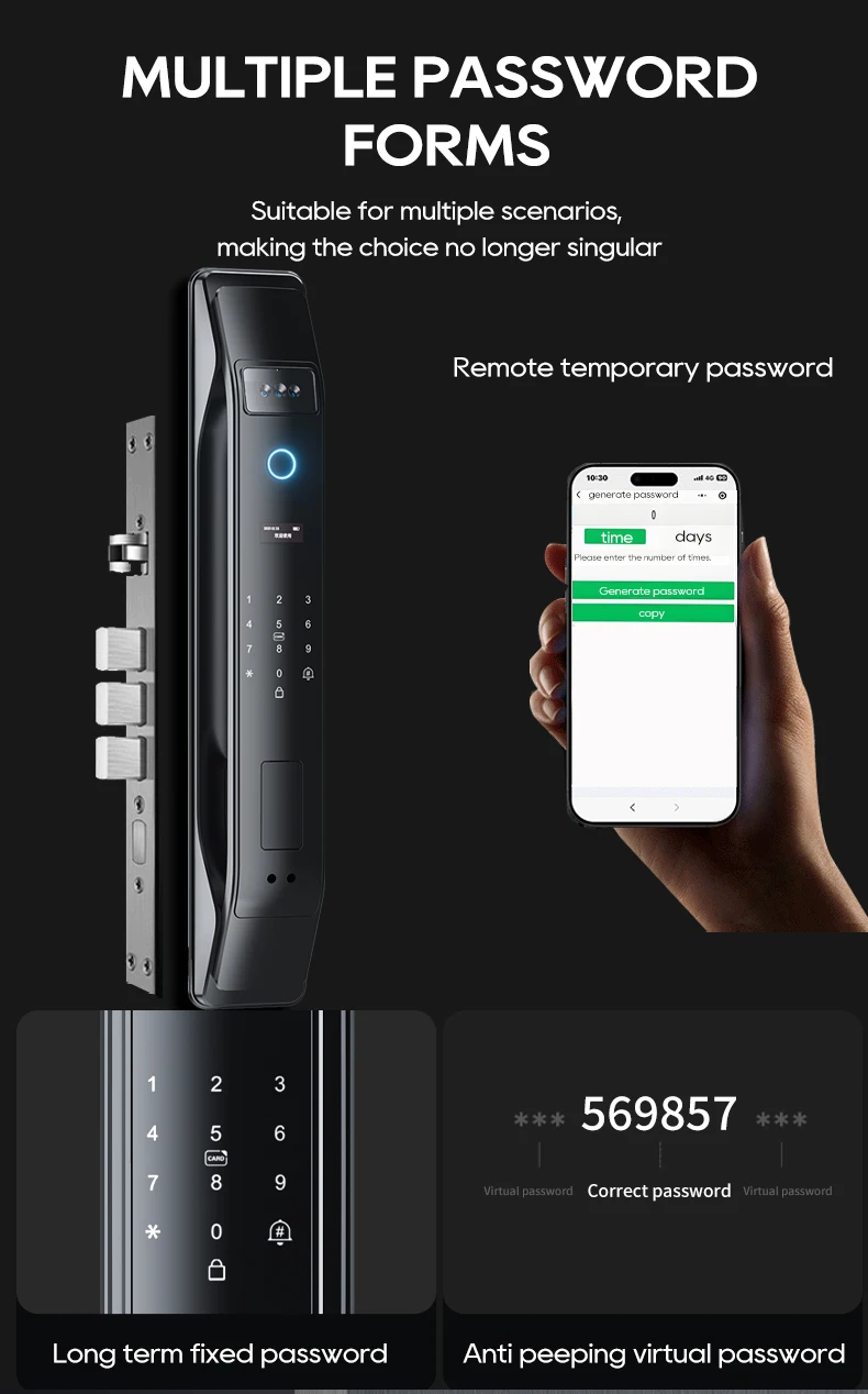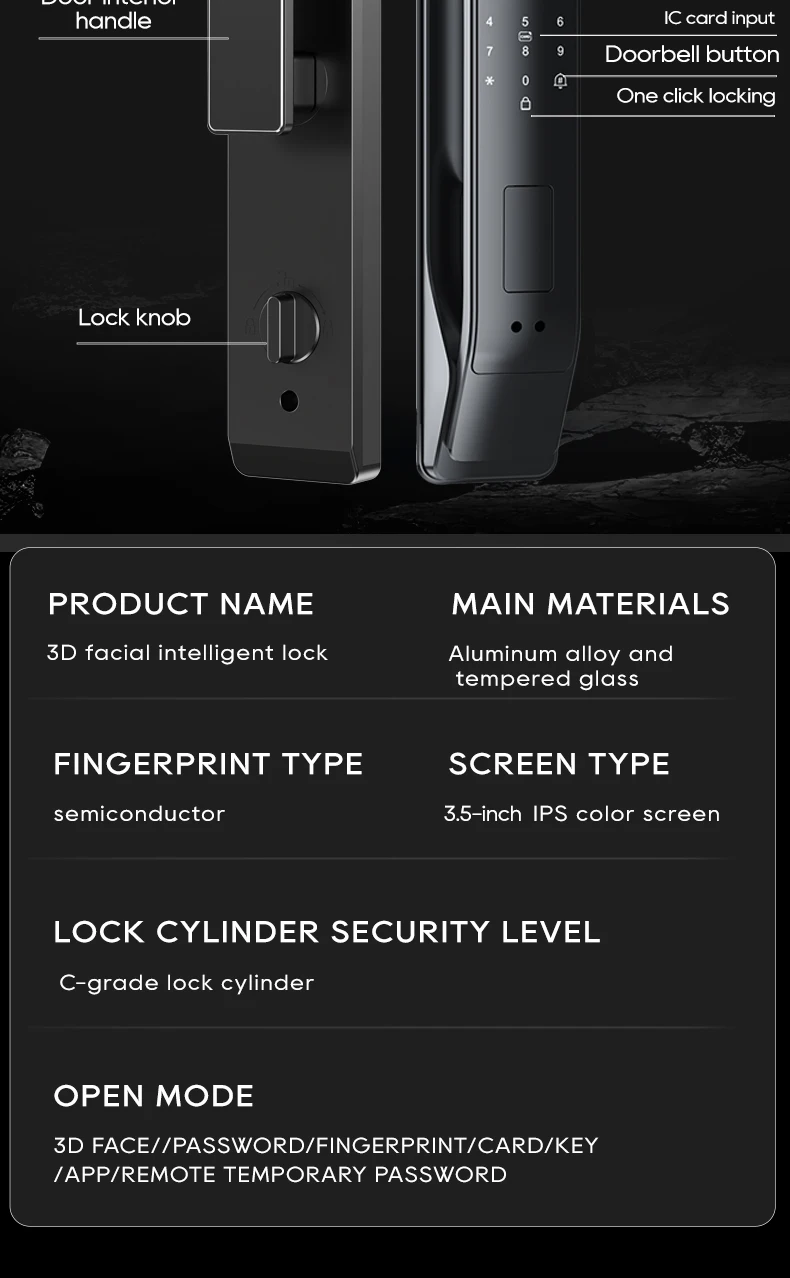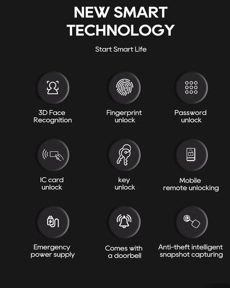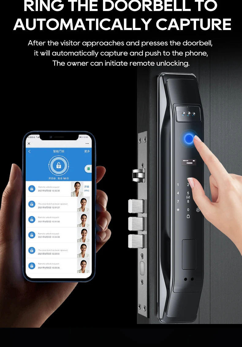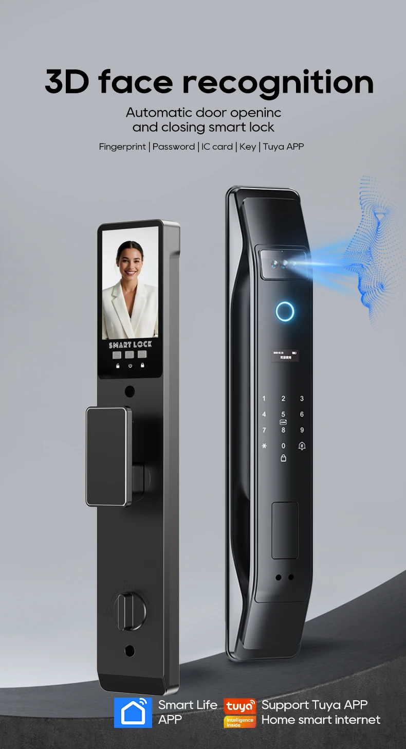 SANKESONG Tuya Smart 3D Face Door Lock Security Camera Monitor Intelligent Fingerprint Password Biometric Electronic Key Unlock