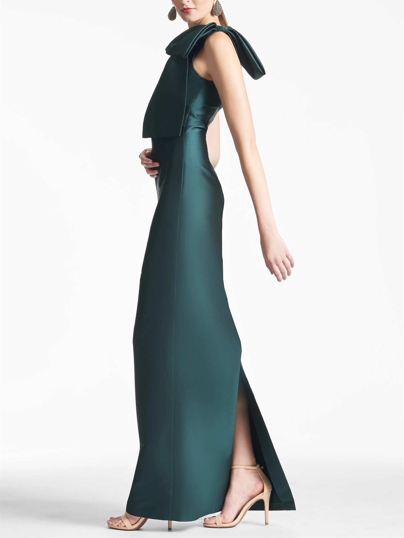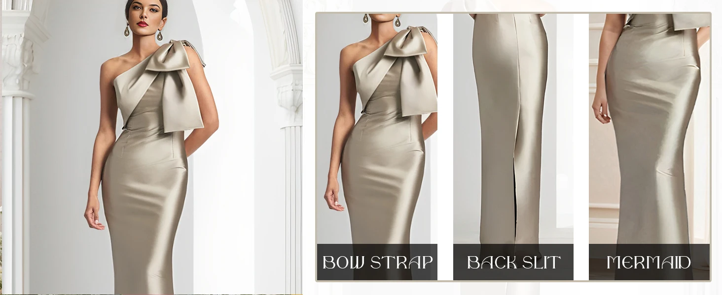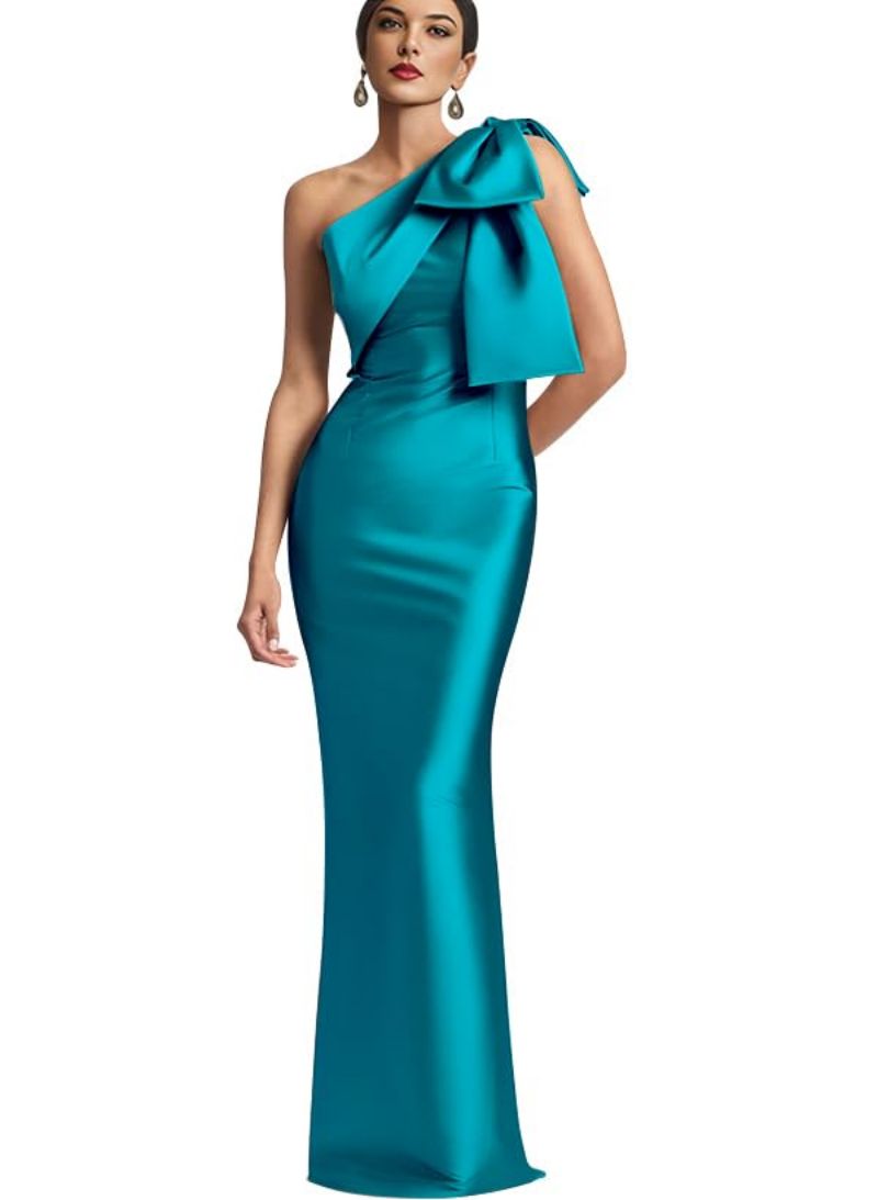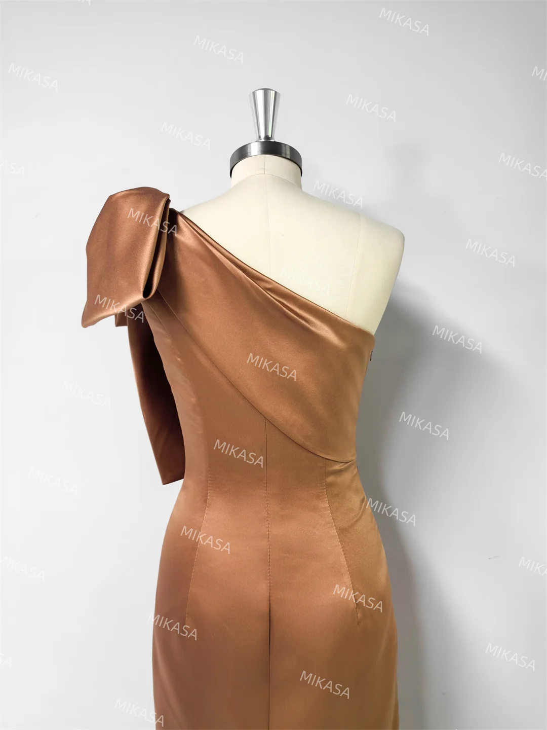 Satin One Shoulder Evening Dresses Elegant Plain Sleeveless Cocktail Dress Backless Mermaid Bodycon Party Gowns With Large Bow