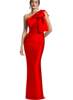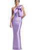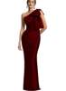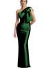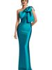 Satin One Shoulder Evening Dresses Elegant Plain Sleeveless Cocktail Dress Backless Mermaid Bodycon Party Gowns With Large Bow