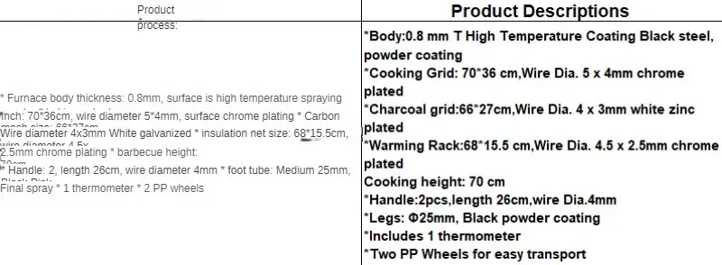 SCB-17 BBQ Grill Round Charcoal Stove Outdoor Bacon Portable 3 in 1 Barbecue Double Deck Smoker Oven Camping Picnic Cooking