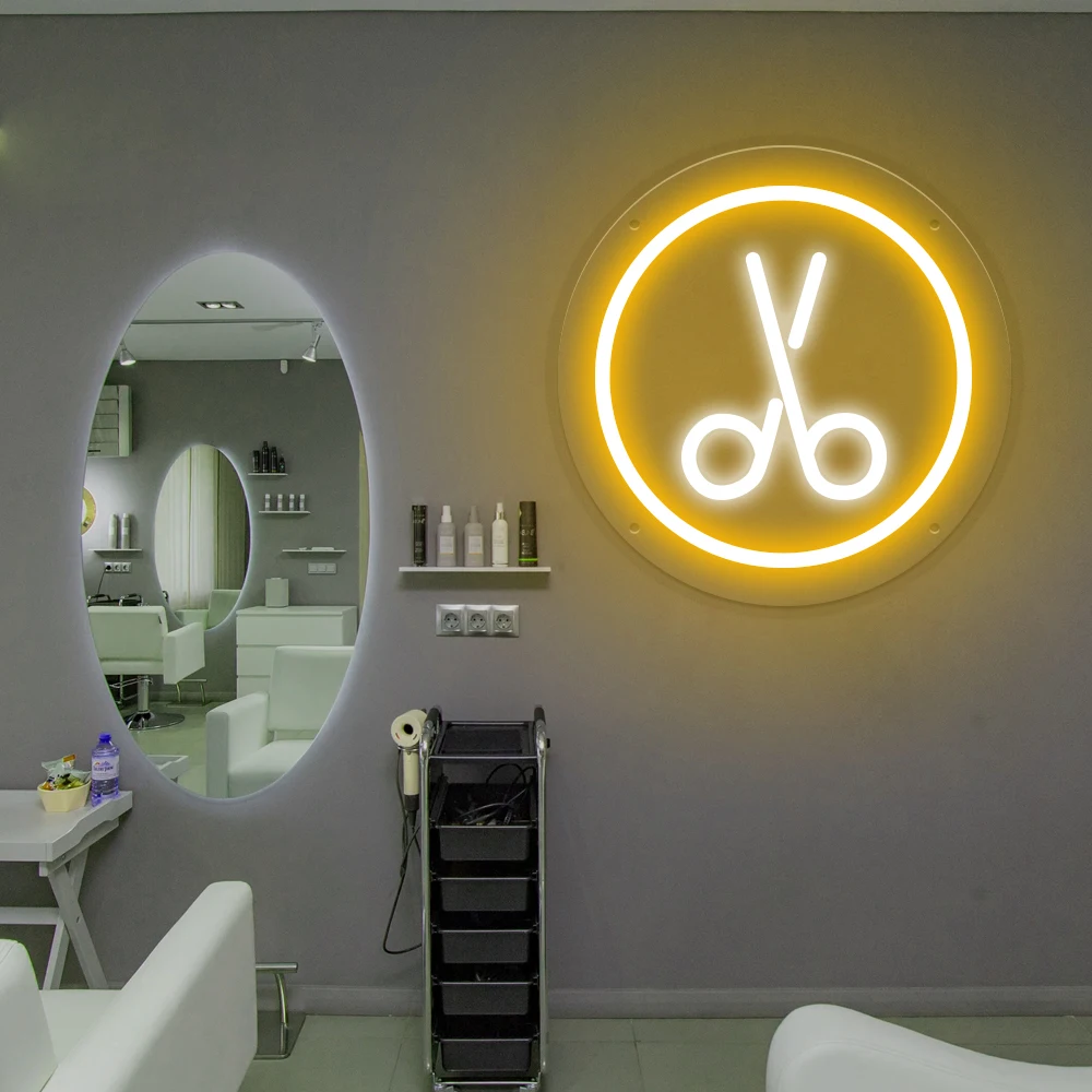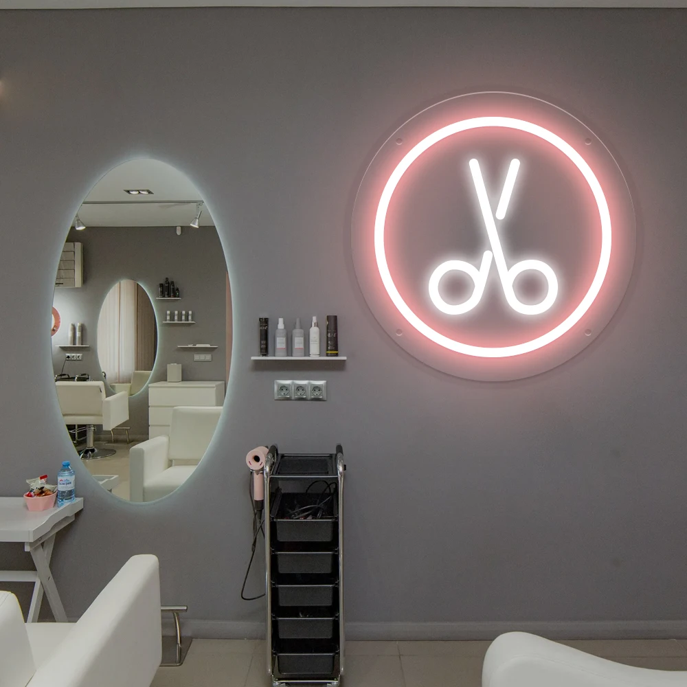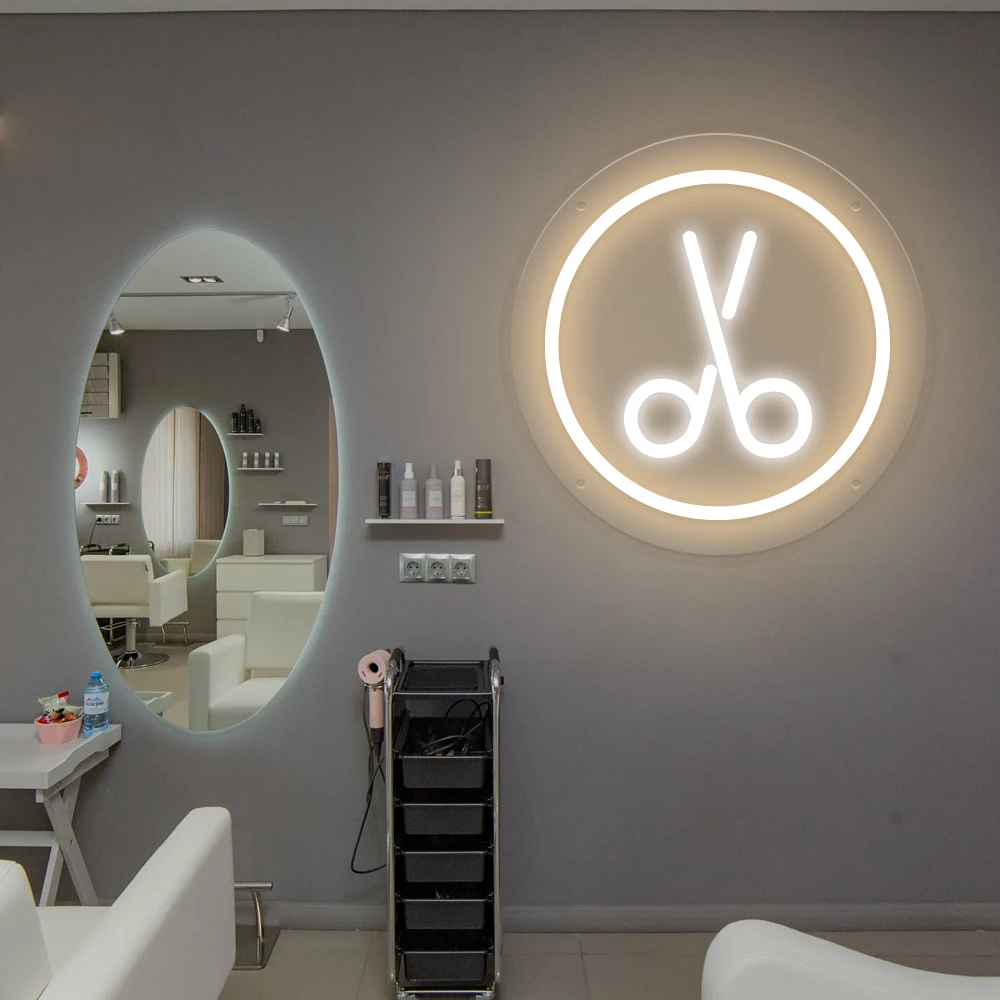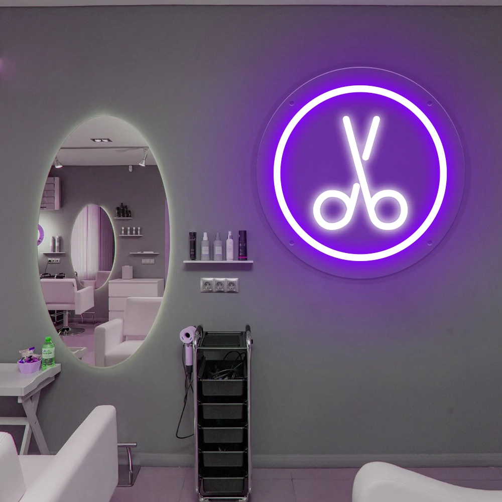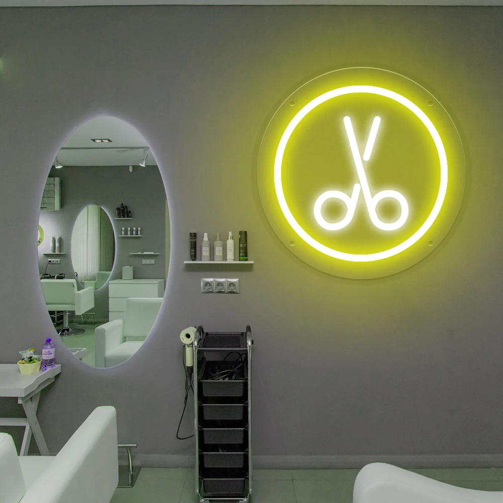 Scissors LED Neon Sign Beautiful Salon Decor for Hairdresser Business Custom Barber Shop Neon Sign Light Room Wall Decor