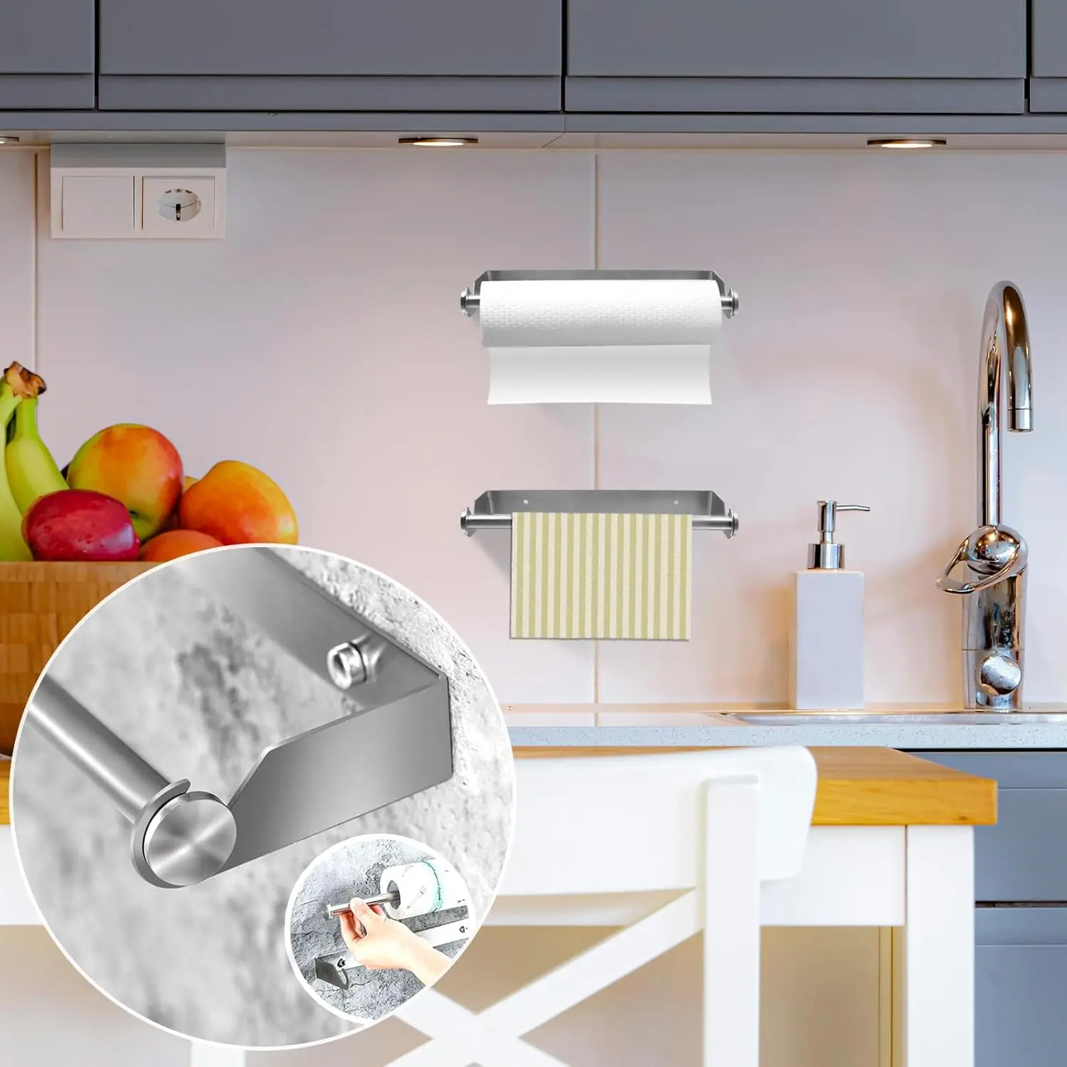 Paper Towel Holder Under Cabinet Wall Mount Paper Towel Holder Paper Roll Holder Self Adhesive Paper Towel Holder for Kitchen
