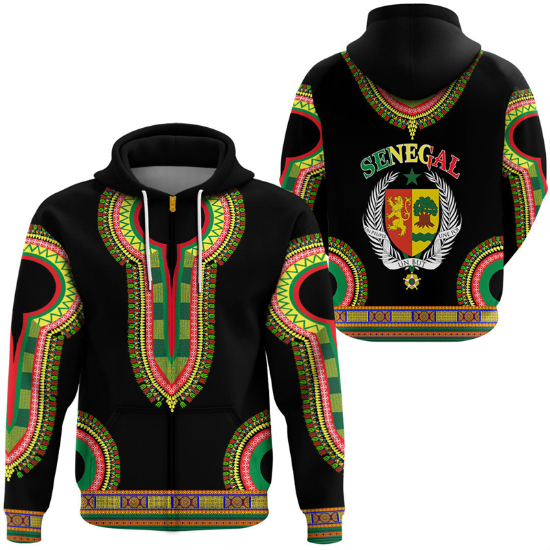 Senegal Flag Map 3D Print Zip Up Hoodie For Men Africa Boy Tracksuit Coat Of Arms Graphic Sweatshirts National Emblem Male Tops