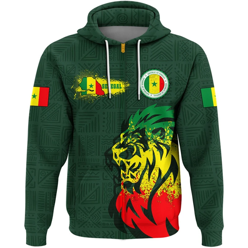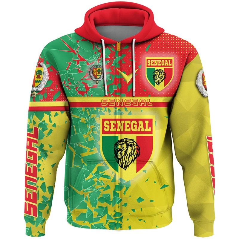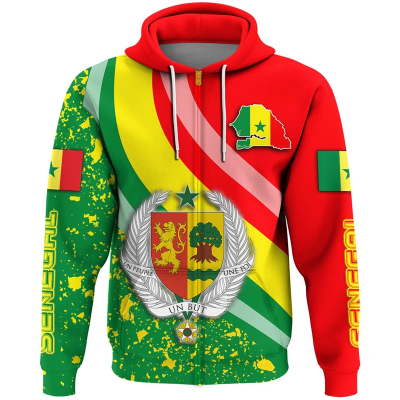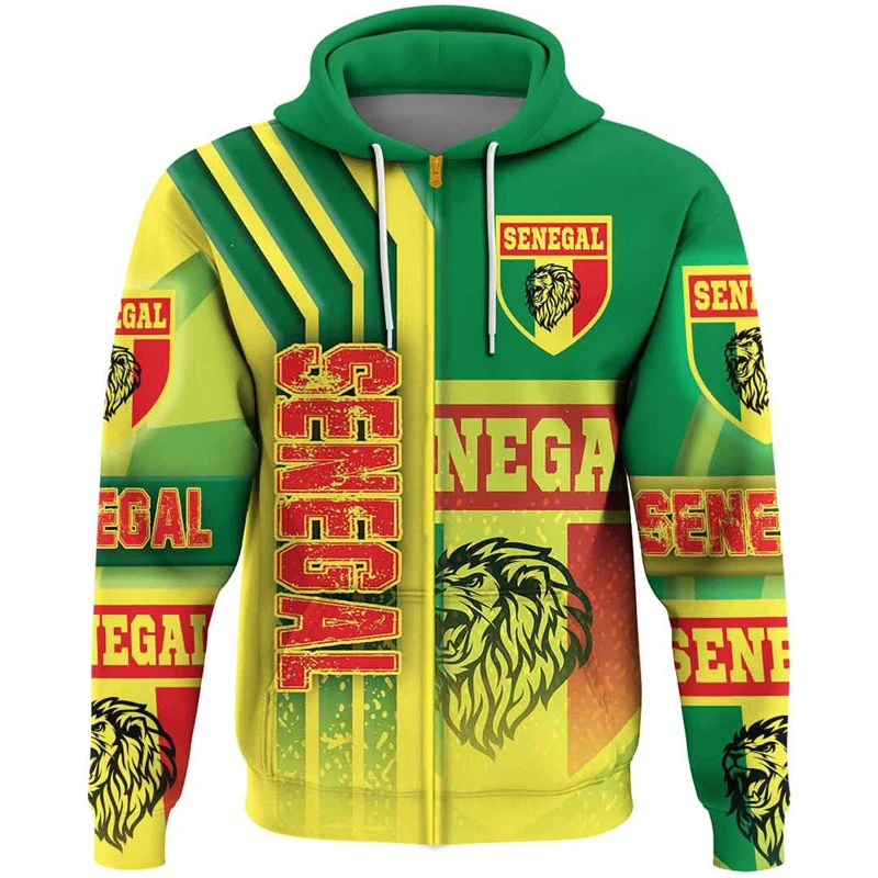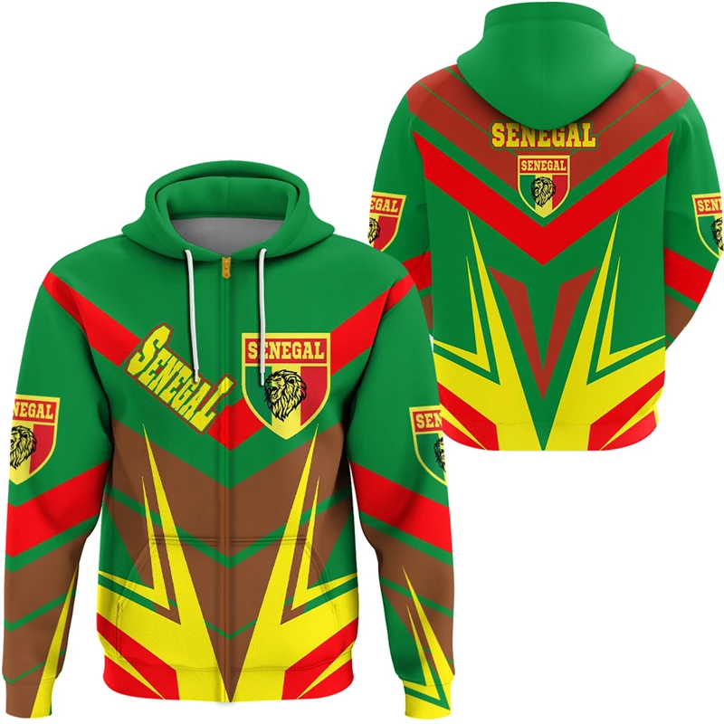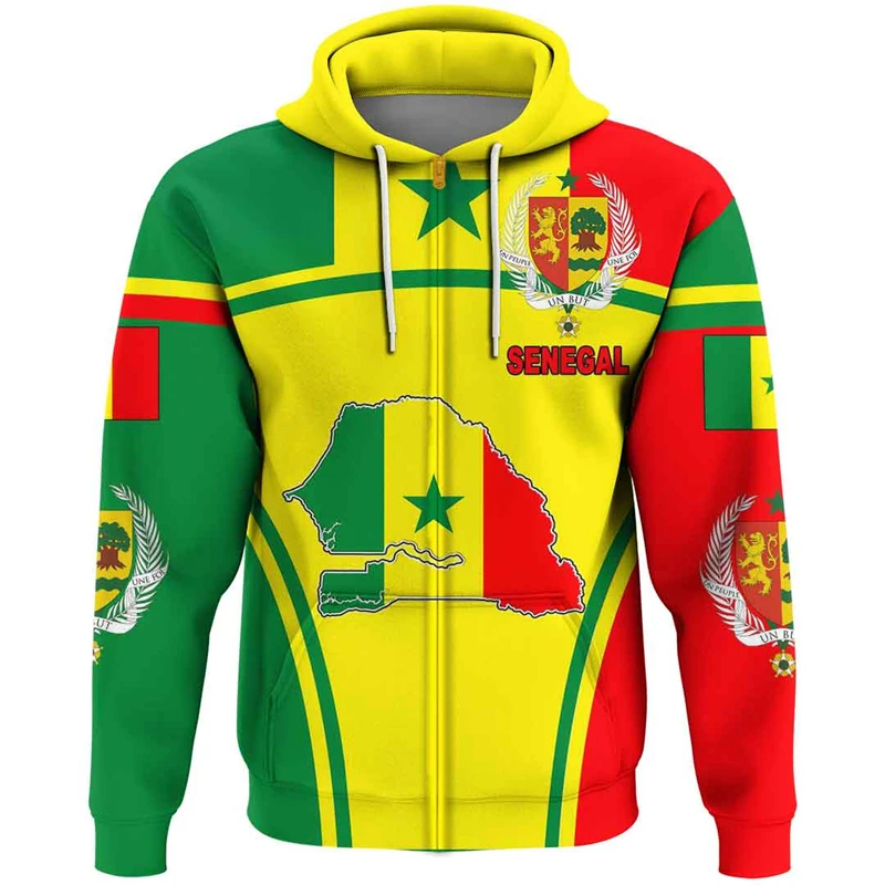 Senegal Flag Map 3D Print Zip Up Hoodie For Men Africa Boy Tracksuit Coat Of Arms Graphic Sweatshirts National Emblem Male Tops