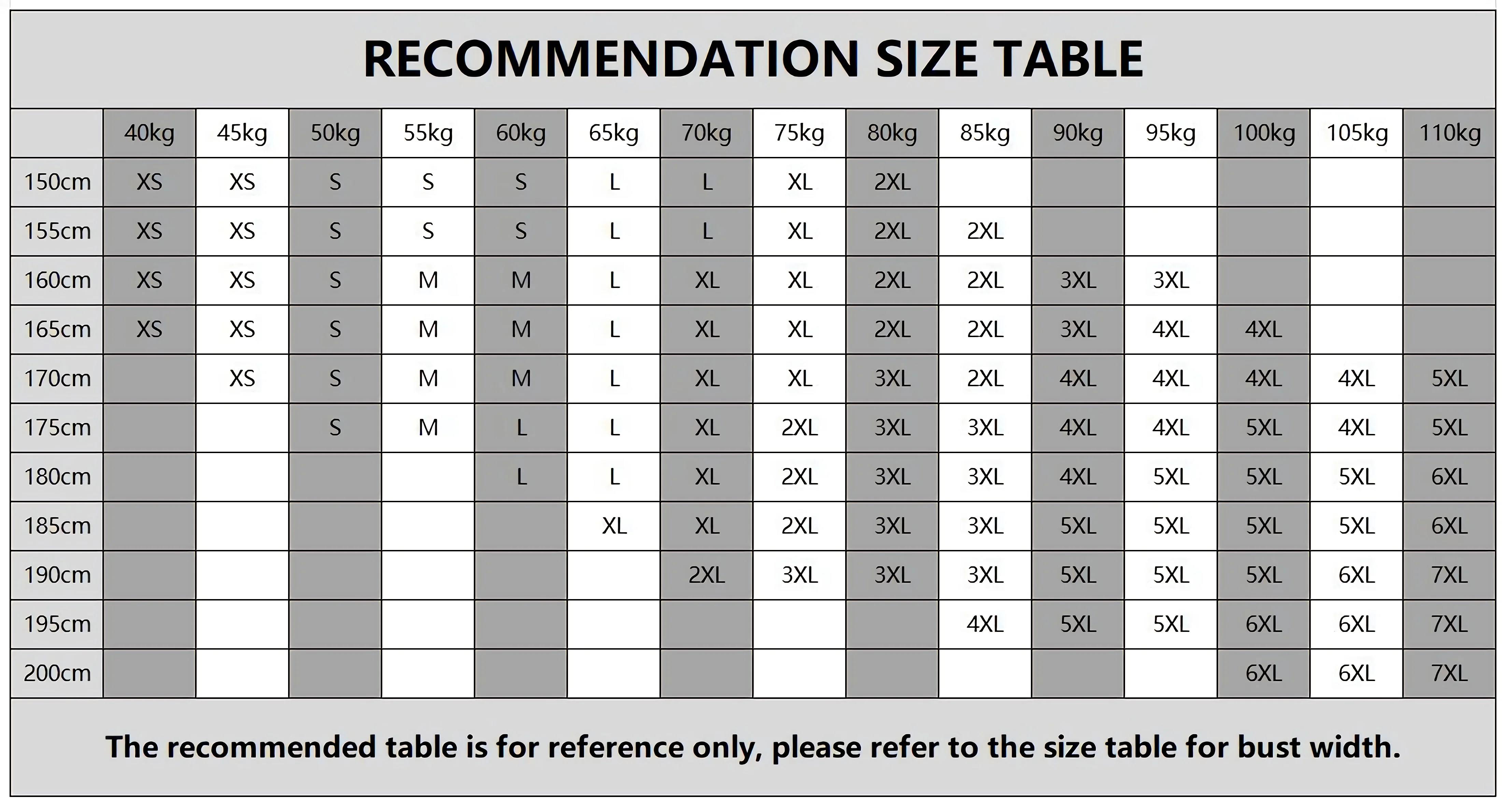 Hoodie Clothes Size Chart(Asian Size) |