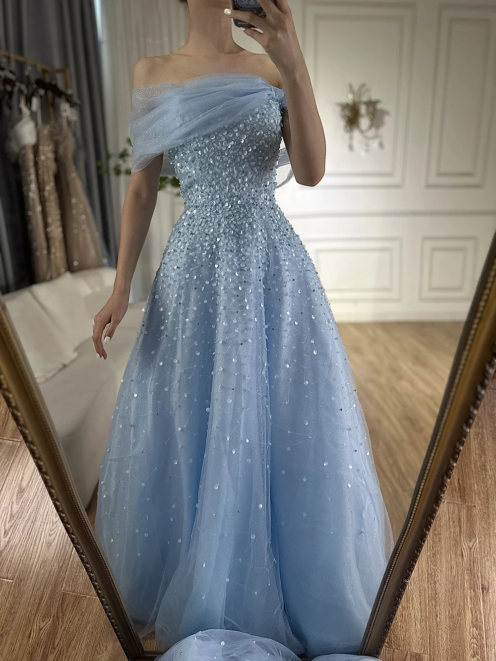 this is our designer try on the dress by herself. real dress much more beautiful