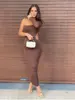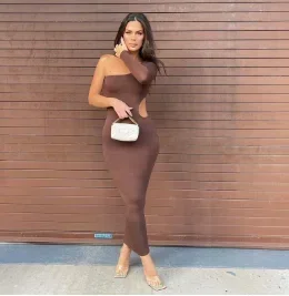 Sexy Lady Fashion Elegant Dress Luxury Women Hot Off-The-Shoulder Solid Color Diagonal Collar Elegant Sleeveless Formal Gown Tee