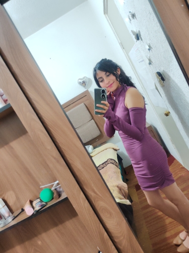 The dress is very beautiful💜The color is identical, it does not stretch much but yes and it is stuck.