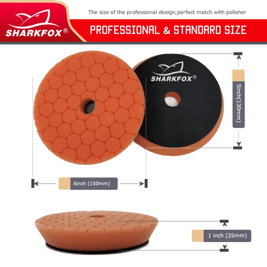 Sharkfox 3/5/6inch Car Polishing Disc Buffing Polishing Pads Self-Adhesive Buffing Waxing Germany Foam Polishing Pad For DA/RO Polisher