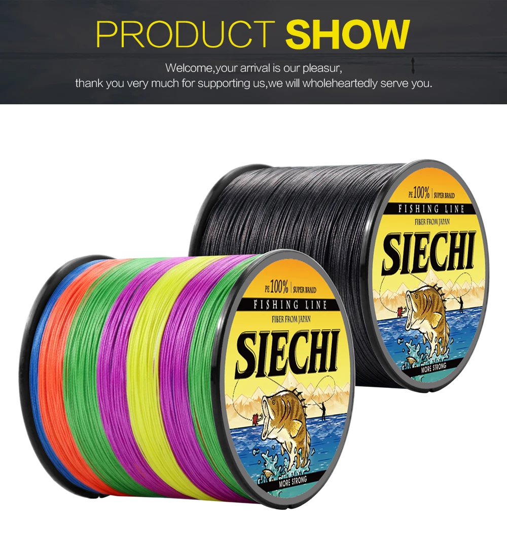 SIECHI 300M 4 Strands Weaves PE Braided Fishing Line Multifilament River Fishing 12LB 15LB 20LB 30LB 38LB 43LB 52LB 65LB 83LB