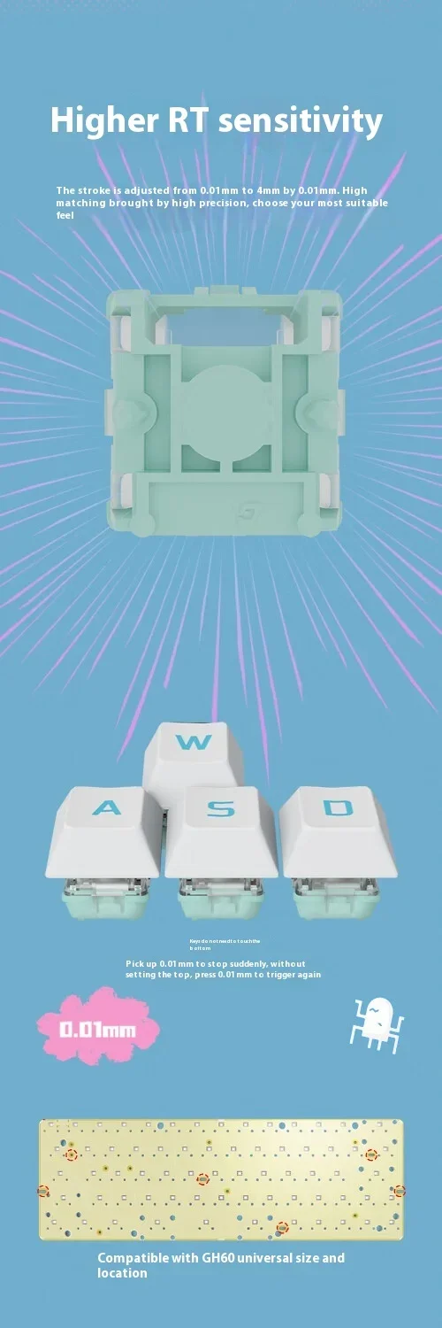 Sikakeyb Hm66 Wired Adjustable Key Range Magnetic Axis Esports RGB Gaming Keyboard Compatible With GH60 Suitable For PC Laptops