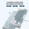My version is trimode and he's perfect. Before I used a keyboard with blue switches and the difference to Brown is huge, much quieter and softer, but still with the tactile feel. The battery lasts long enough, about 3 or 4 days on. The lights go out when it is idle and sometimes it goes into Sleepy mode, which needs to press one of the keys and wait for it to reactivate. The lighting is fixed (Rainbow), not RGB, but it has several modes (you exchange the lighting modes in Fn + | ). Arrived in two weeks or so, not very well packed, but in order. Comes with extra switches and a remover. So far I have nothing to complain about, exactly as I expected, I did not feel any difference of response time from wired to WiFi. I highly recommend.