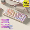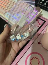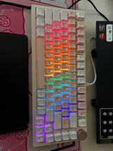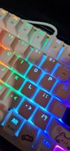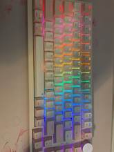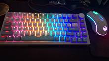 this keeb is absolutely adorable!!!! it’s only avaliable in rainbow lights, but it’s so vibrant!!! i changed my keycaps so they match more with the aesthetic <333 overall, this keeb is super responsive and the switches are pretty good!! i migh change them but i still really love them!!