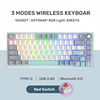 My version is trimode and he's perfect. Before I used a keyboard with blue switches and the difference to Brown is huge, much quieter and softer, but still with the tactile feel. The battery lasts long enough, about 3 or 4 days on. The lights go out when it is idle and sometimes it goes into Sleepy mode, which needs to press one of the keys and wait for it to reactivate. The lighting is fixed (Rainbow), not RGB, but it has several modes (you exchange the lighting modes in Fn + | ). Arrived in two weeks or so, not very well packed, but in order. Comes with extra switches and a remover. So far I have nothing to complain about, exactly as I expected, I did not feel any difference of response time from wired to WiFi. I highly recommend.