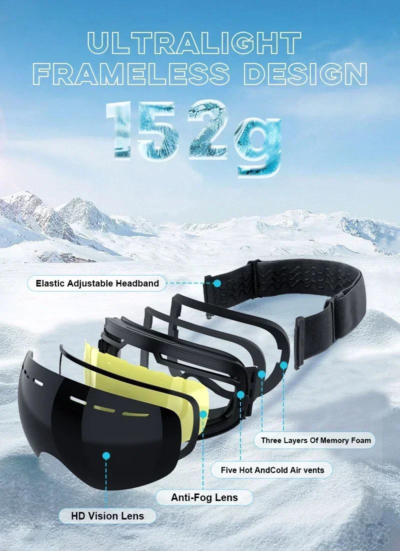 • High-Quality Material :Crafted from TR frame material and CR-39 lenses material, these ski goggles promise durability and superior optics for an unparalleled user experience.