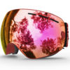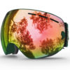 Designed to reduce fogging and optimizes the flowing air over the inside of the lens. ski goggles provide smooth air-flow system which brings fresh air and exhaust moisture quickly and effectively. The big,spherical,frameless lens provides a truly unobstructed & clear view of the slopes.