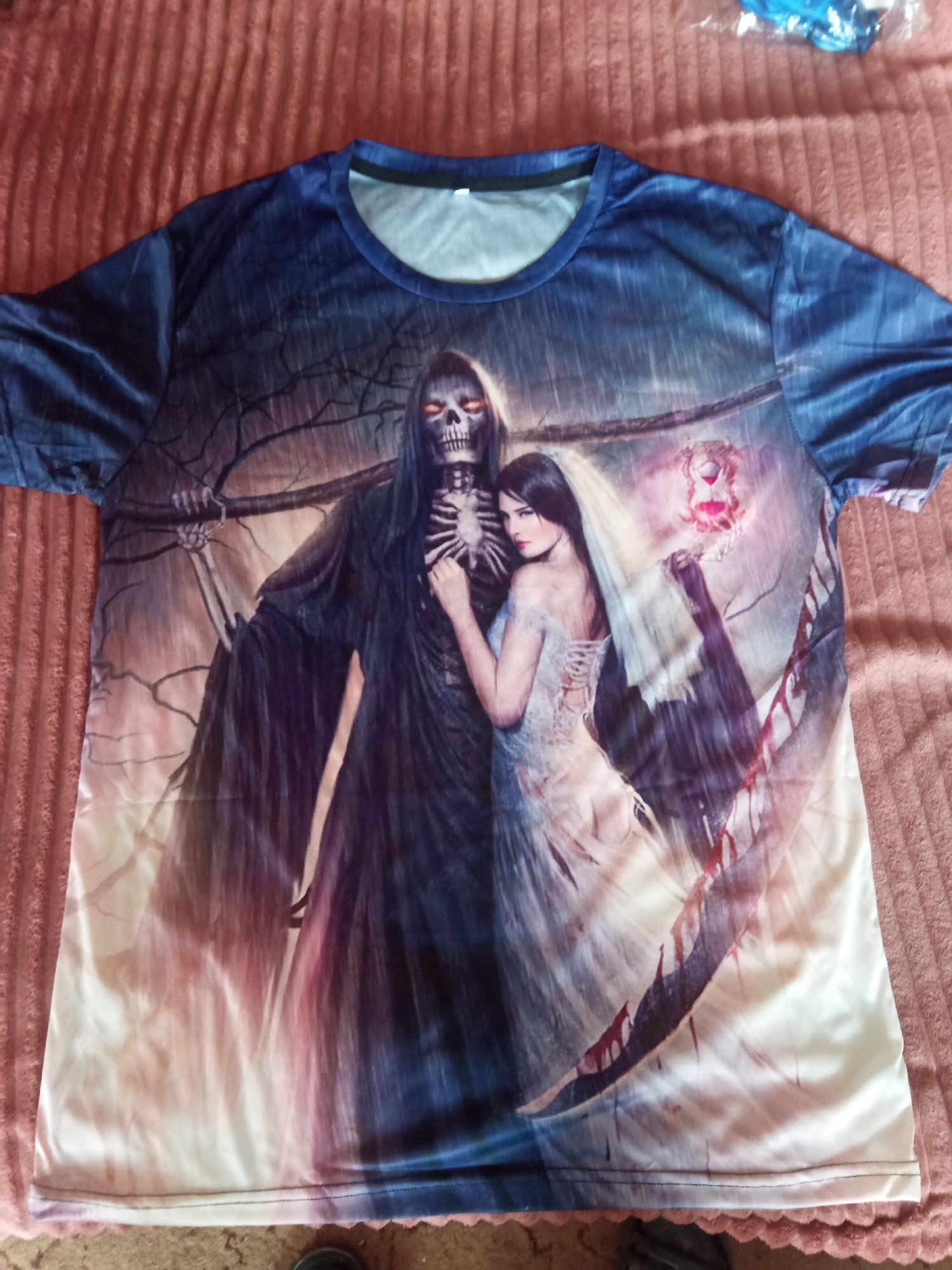 The print is a little wrong. And so what I wanted. Lightweight T-shirt. The size corresponds. I'm Satisfied