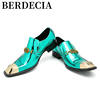 Small Rhombus Metal Decor Buckle Men Genuine Leather Oxfords Business Shoe Slip On Rivet Mens Wedding Dress Shoes Black Bottom