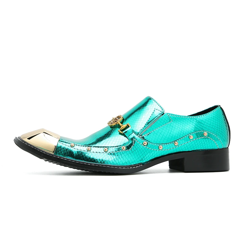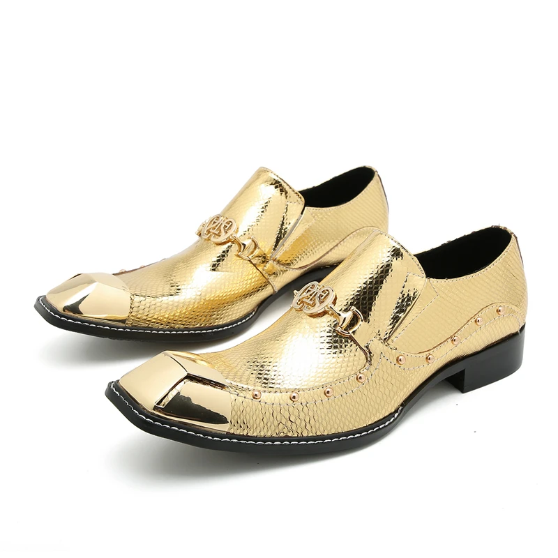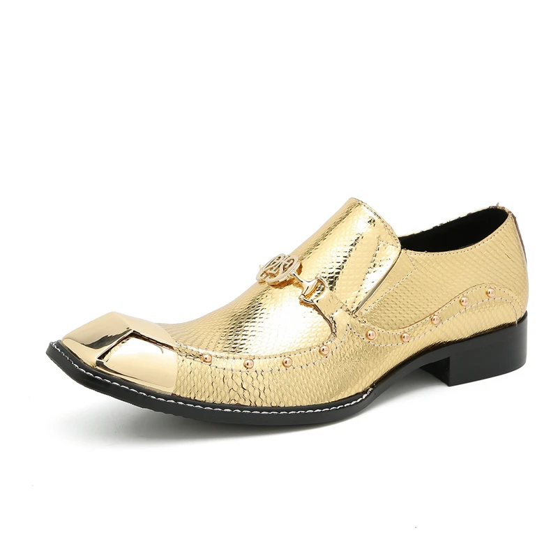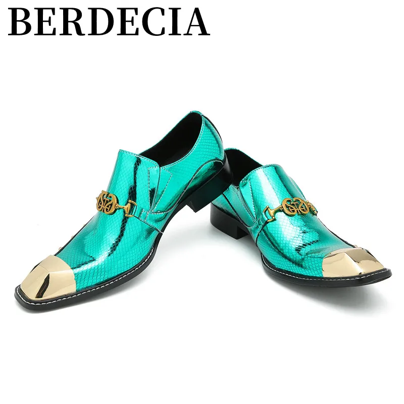 Small Rhombus Metal Decor Buckle Men Genuine Leather Oxfords Business Shoe Slip On Rivet Mens Wedding Dress Shoes Black Bottom