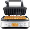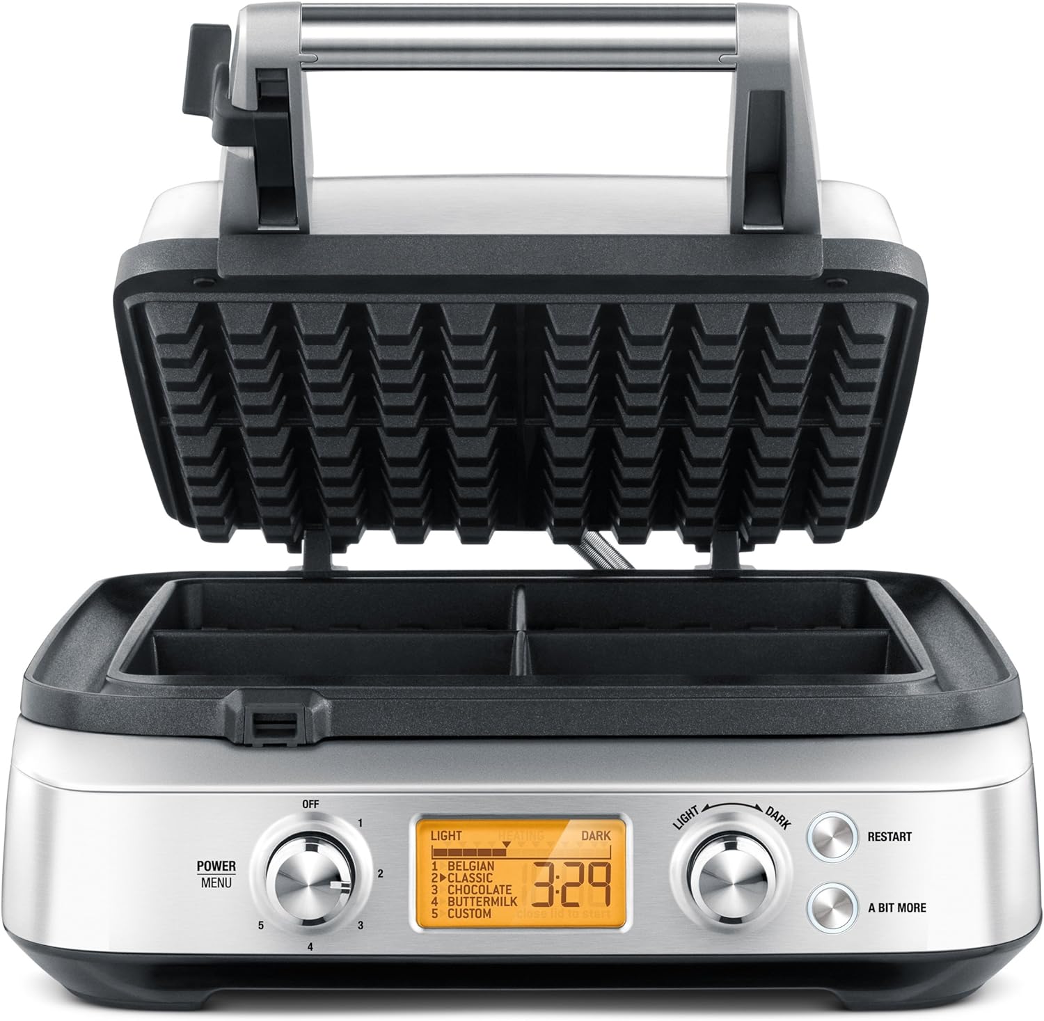 BWM640XL Features: -The Smart collection. -Stainless steel housing with die-cast aluminum cooking plates. -Four batter type custom settings and 12 color settings. -Top plate lid automatically starts timer when lid closes. -LCD indicator with reset timer button and a bit more button. -Moat for no mess and no waste. Product Type: -Standard waffle maker. Timer Included: -Yes. Indicator Light: -Yes. Non-Stick: -Yes. Primary Material: -Metal. Finish: -Silver. Grids/Plates Included: -Yes. Dimensions: Overall Height – Top to Bottom: -5. 75″. Overall Width – Side to Side: -15. 5″. Overall Depth – Front to Back: -12″. Overall Product Weight: -14. 3 lbs.