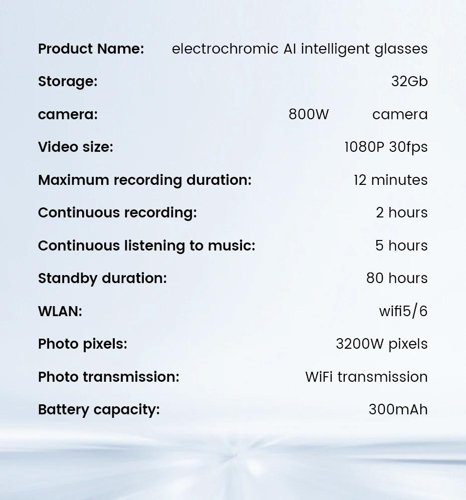 Smart Adjustable Color AI Glasses 800W Video Shooting 32G Memory Bluetooth Call Music Function for Video Shooting And Photograph