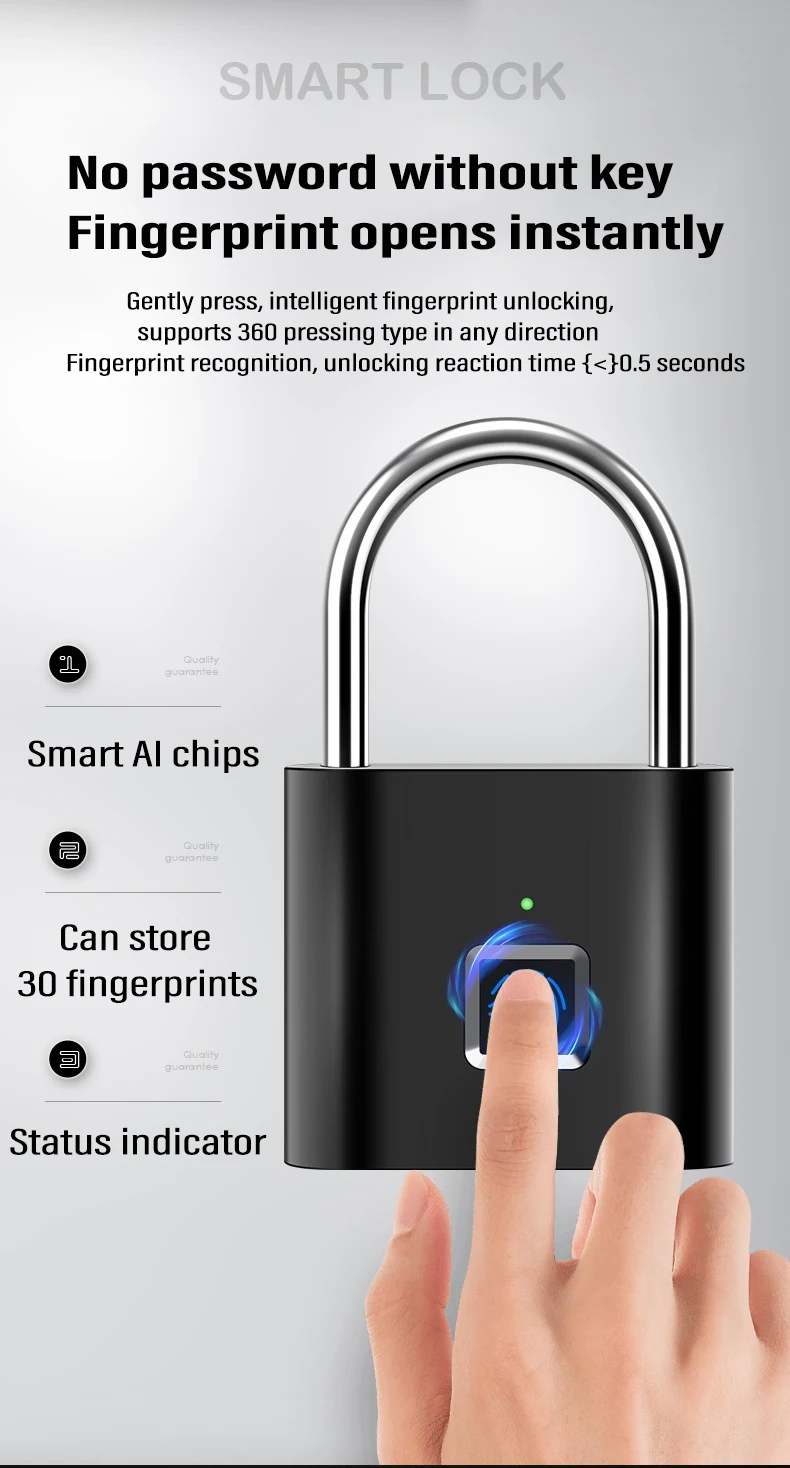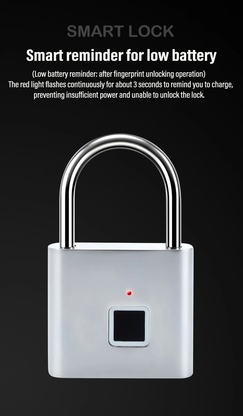 Smart Fingerprint Padlock Keyless Waterproof Zinc Alloy Biometric Padlocks USB Charging Fingerprint Lock Anti-theft Door Lock